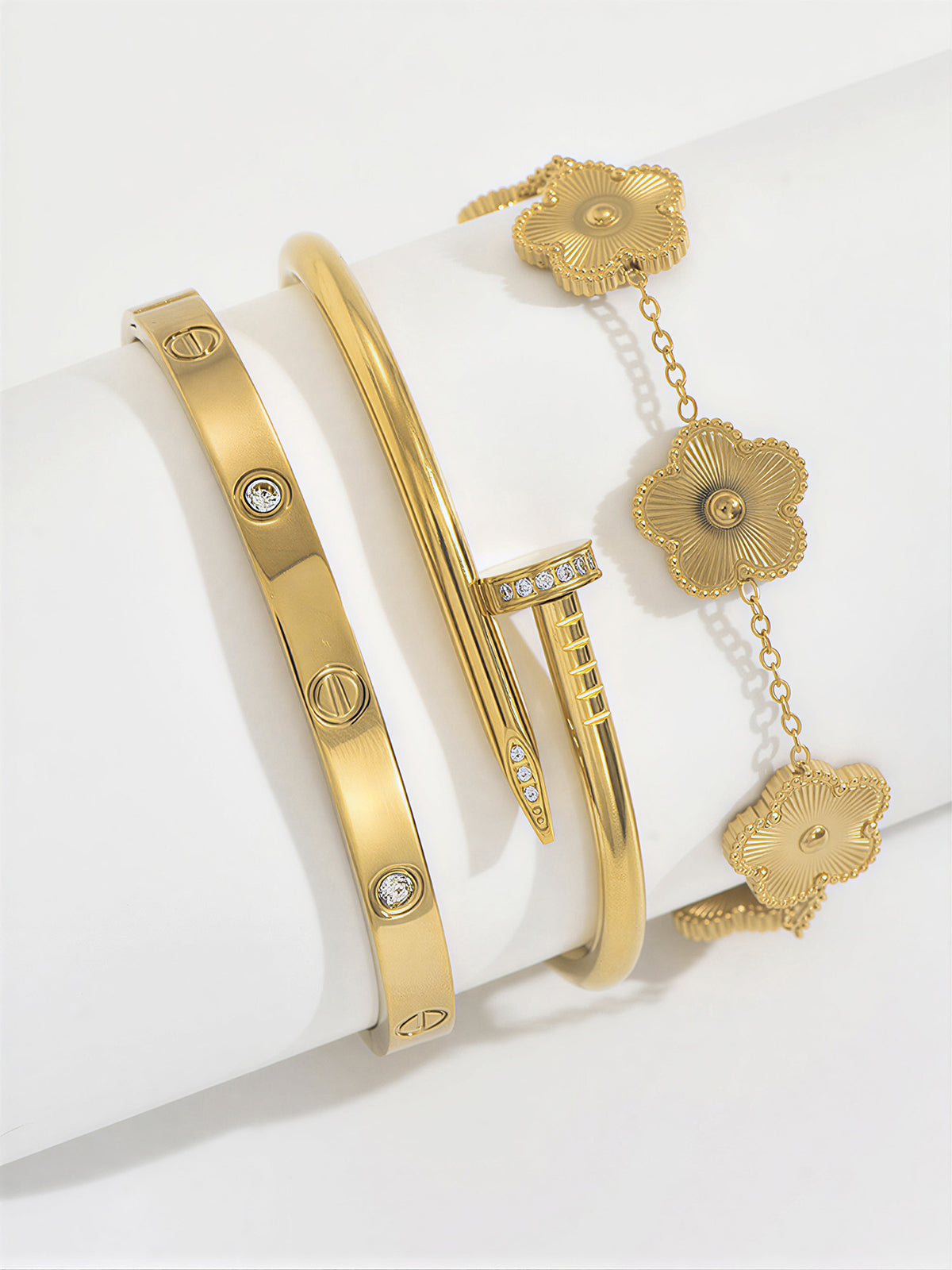 3pcs Screw & Nail & Clover Bracelet Set