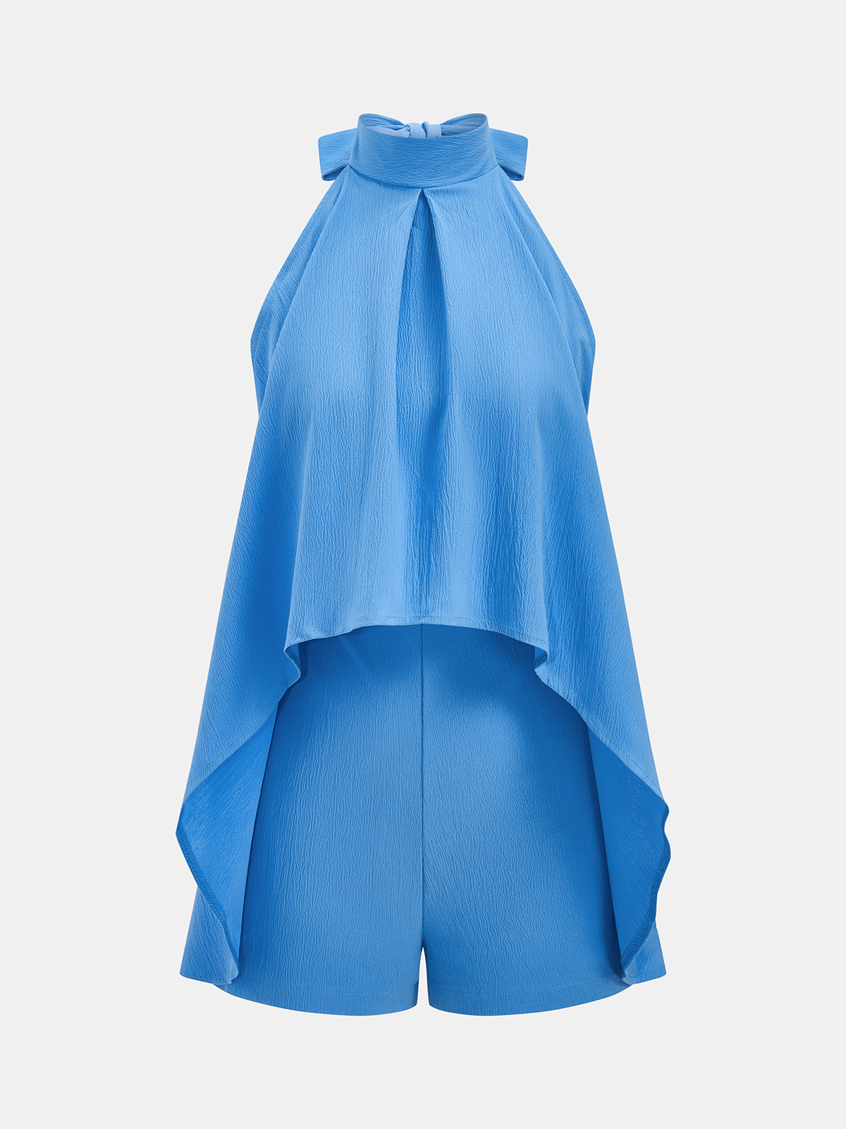 backless,blue,casual,clothing,coll:bottoms,coll:dresses,coll:sheer_bare-back,coll:vacation,coll:weekend_getaway,dresses,in_six_month,jumpsuits,minegence,no,not_low_sales,oa251223068,regular fit,ruffle,sleeveless,slight stretch,stand collar,summer hues,thin,vacation,women,woven fabric