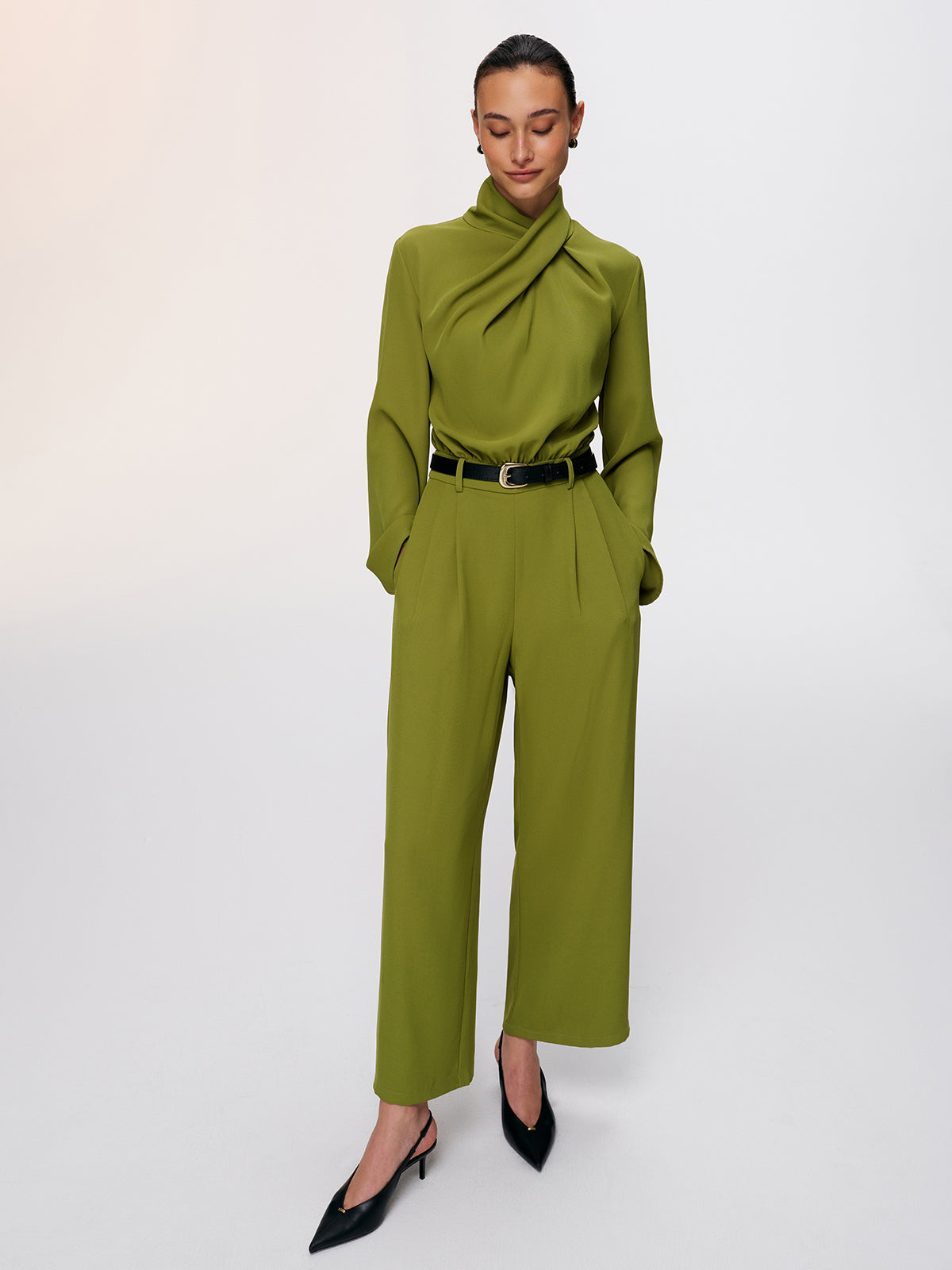 clothing,coll:bottoms,coll:dresses,collar,corpcore,cross wrap,date,dresses,feminine,green,in_six_month,jumpsuits,long sleeve,mwt,no,non-stretch,not_low_sales,oa251125091,photo_model,regular,regular fit,summer hues,women,woven fabric