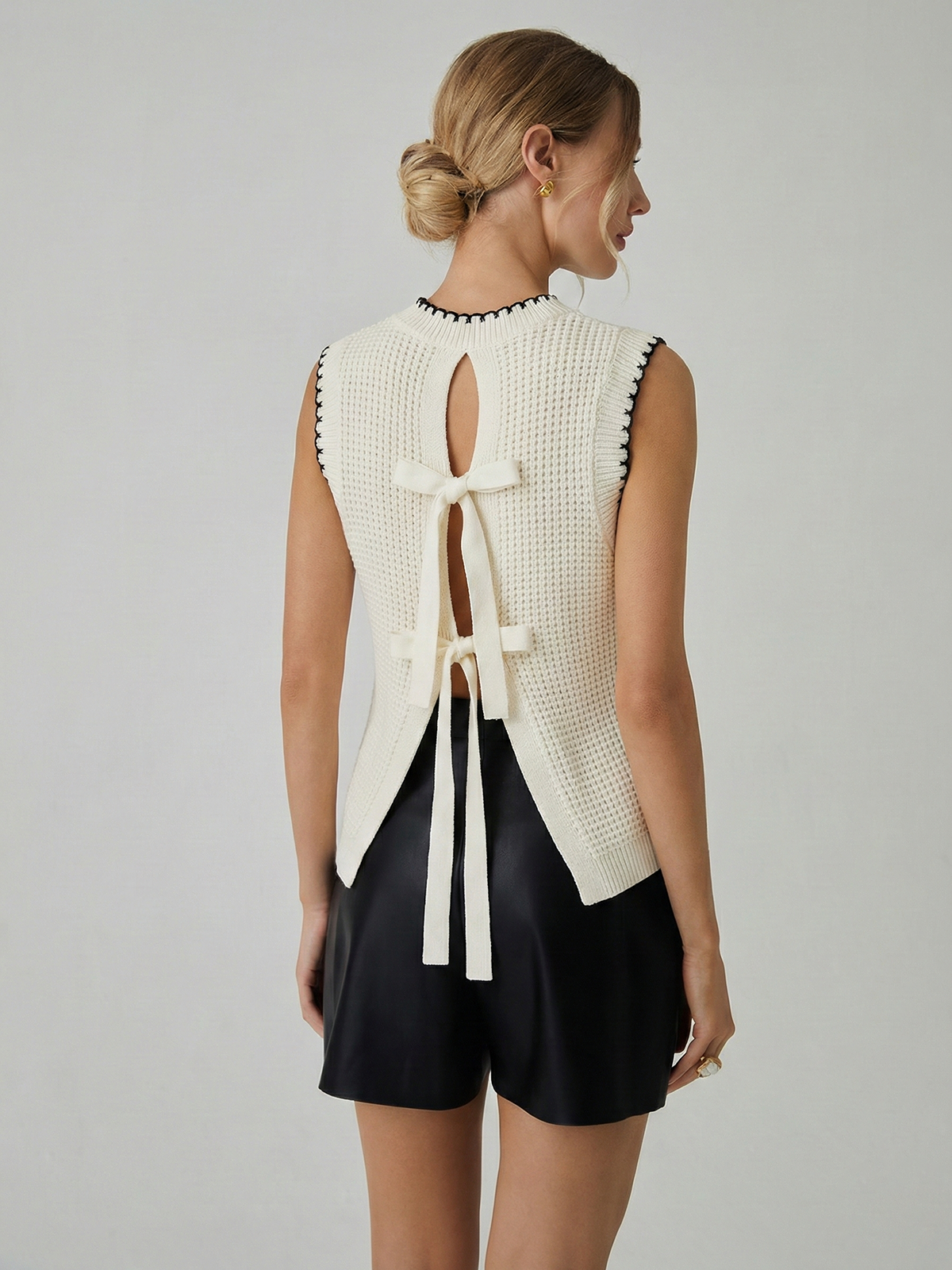 backless,bow,casual,clothing,coll:knitwear,coll:sheer_bare-back,coll:sweaters_cardigans,coll:tops,coll:trending,coll:vests,contrast piping / trim,date,feminine,high stretch,in_six_month,knit,knitwear,not_low_sales,oa251212076,off-white,photo_ai,regular,regular fit,sweater vests,women