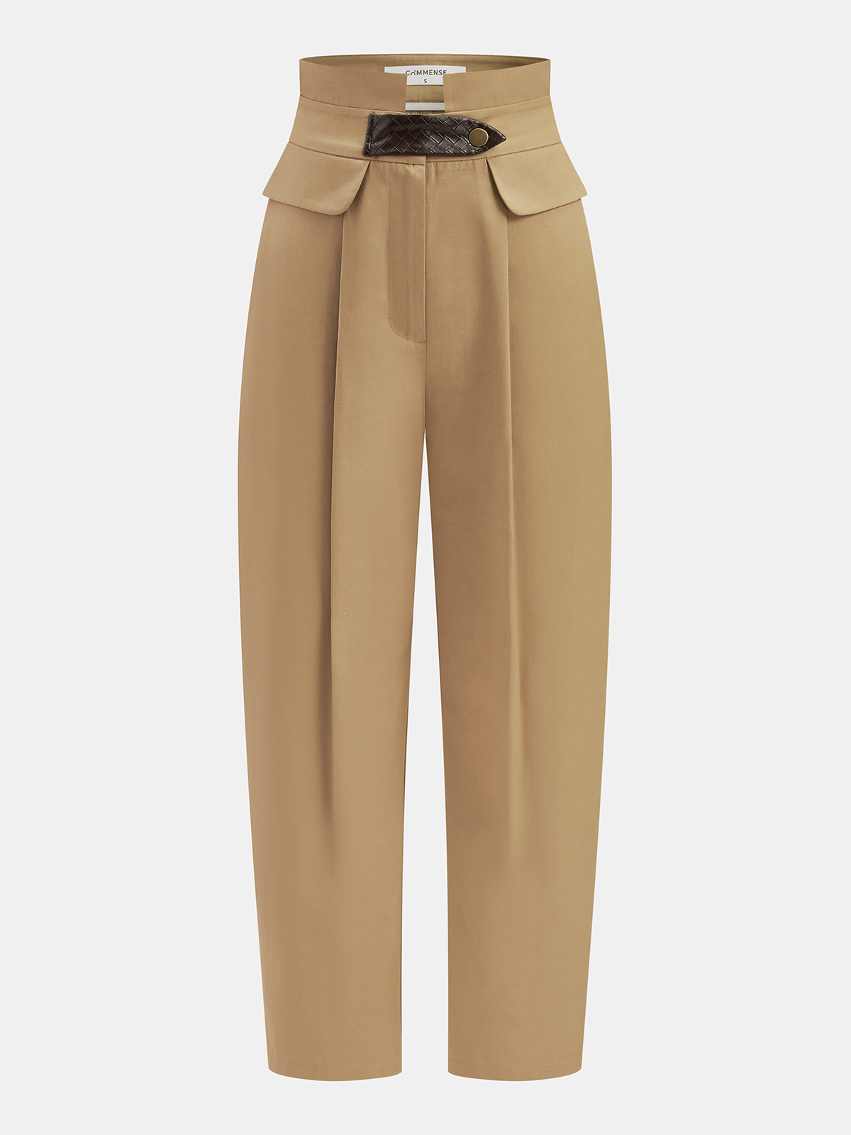 bottoms,casual,clothing,coll:bottoms,coll:pants,coll:trending,corpcore,cropped pants,high waist,in_six_month,khaki,leather detail,minegence,no,non-stretch,not_low_sales,oa251029047,pants,regular,regular fit,women,woven fabric