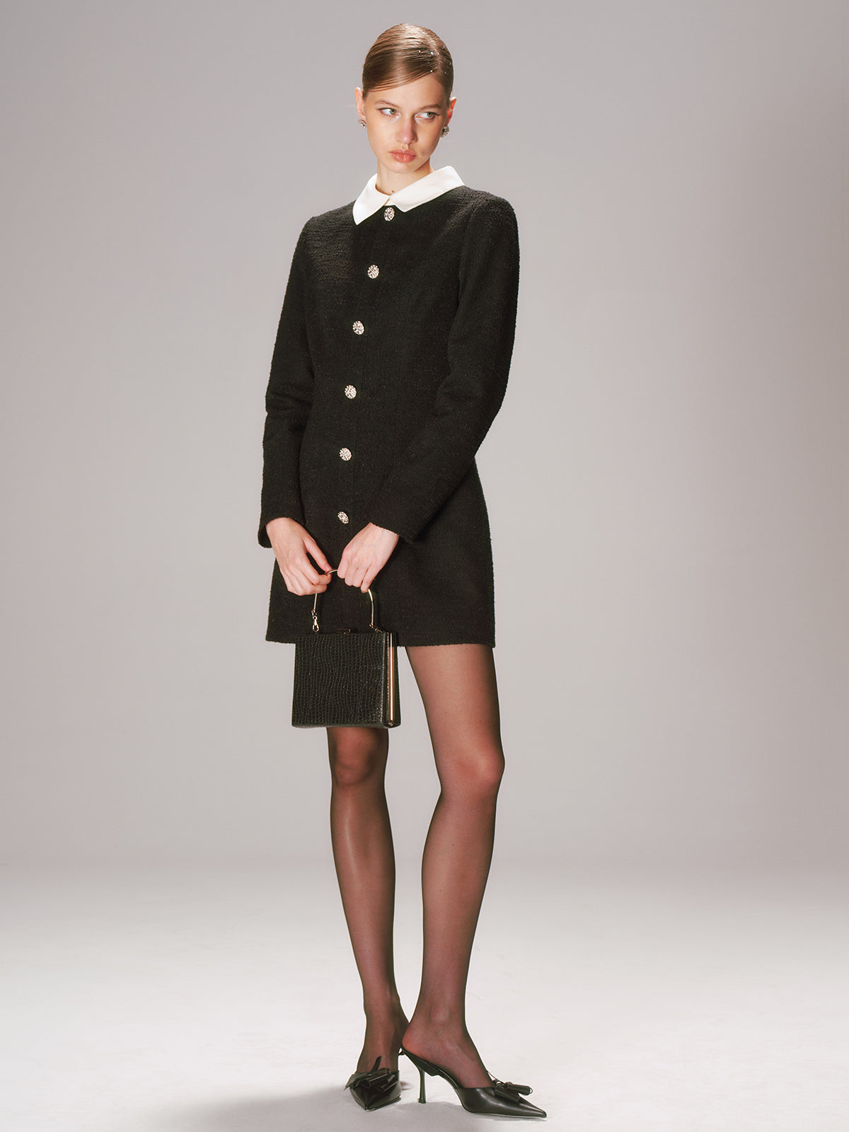 2‌5 christmas,black,clothing,coll:dresses,coll:vintage_fabrics,collar,color block,corpcore,date,dresses,fall,feminine,in_six_month,inner sample,long sleeve,mwt,no,non-stretch,not_low_sales,oa250926094,patchwork,photo_model,regular,short,slim fit,spring,tweed,winter,women