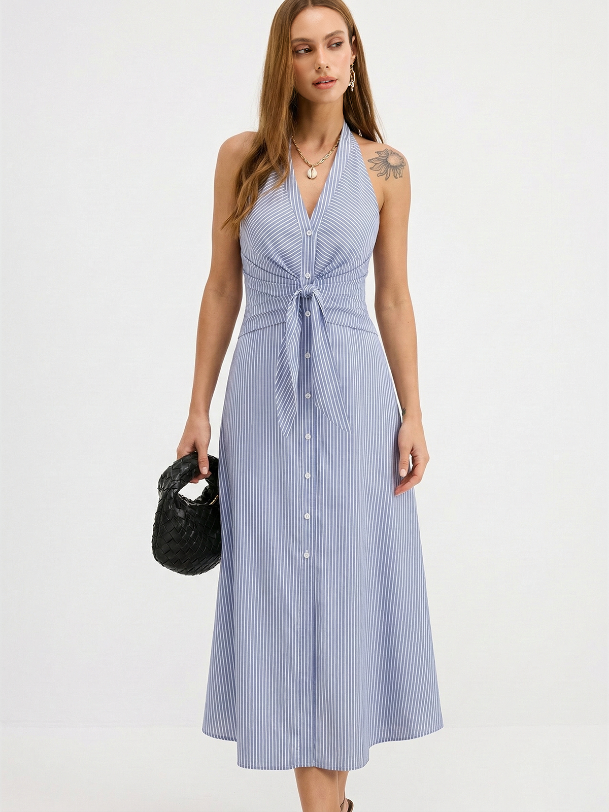 Cotton Striped Halter Tie-Waist Maxi Dress