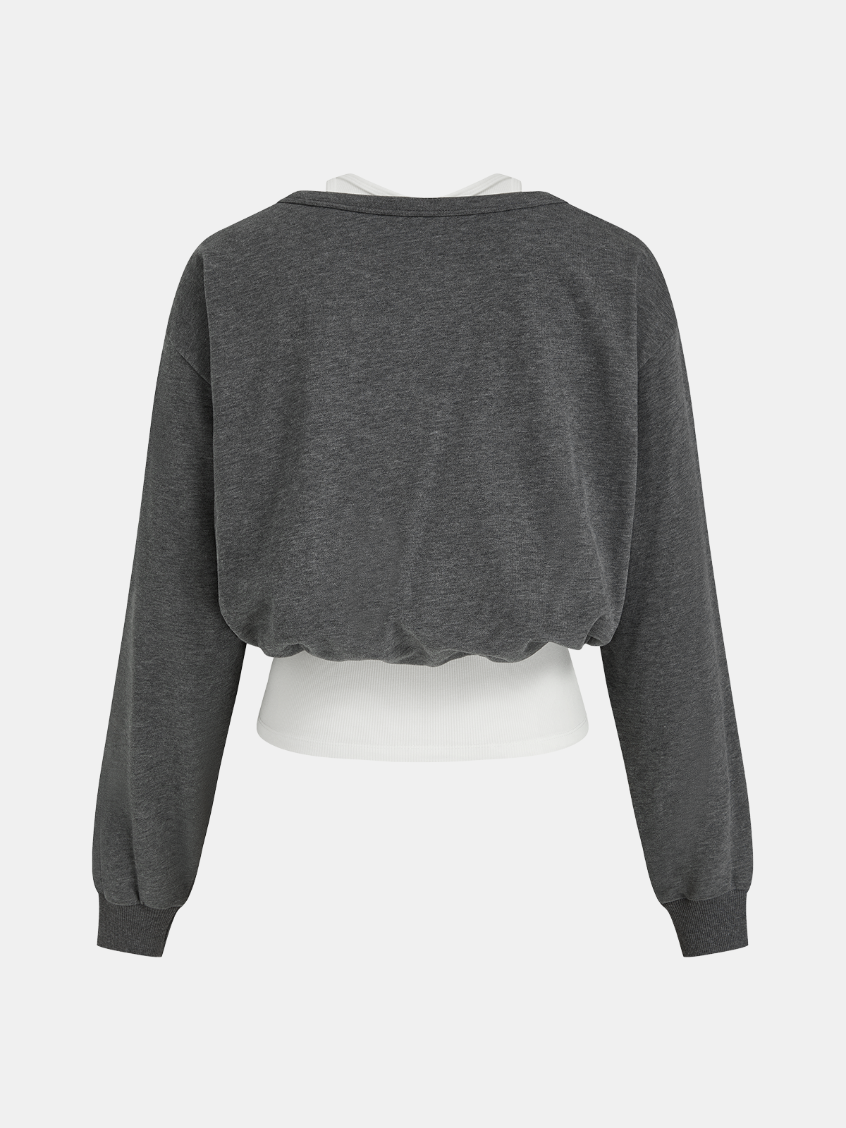 Cropped Sweatshirt with Ribbed Tank Two-Piece Set