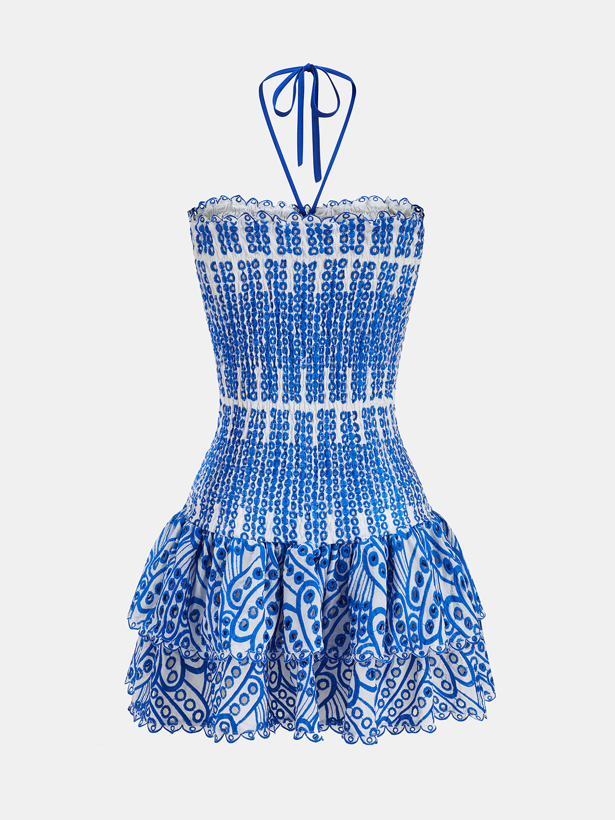 Halter Smocked Embroidered Layered Mini Dress