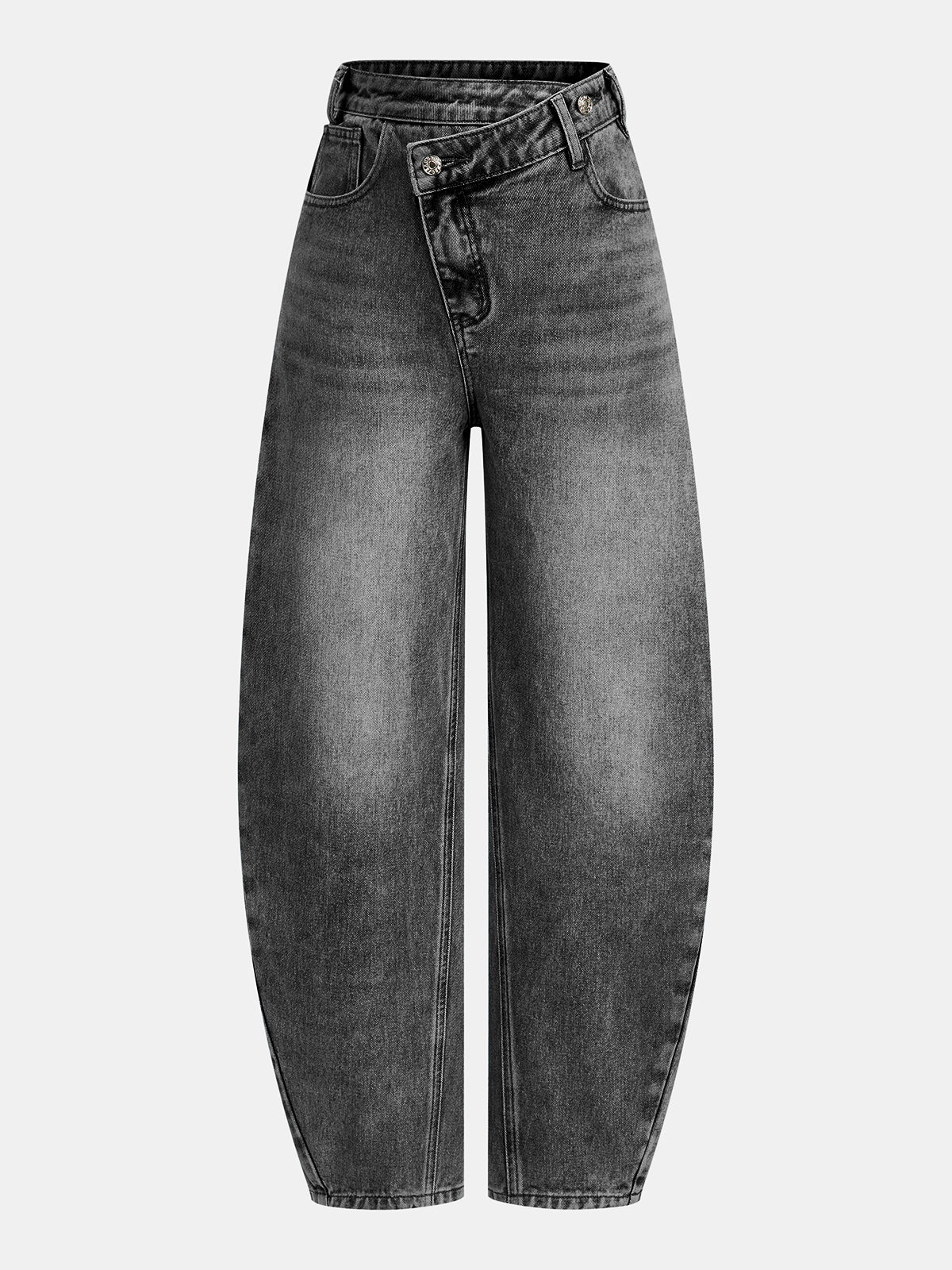 High-Waist Denim Asymmetric Curved-Leg Jeans