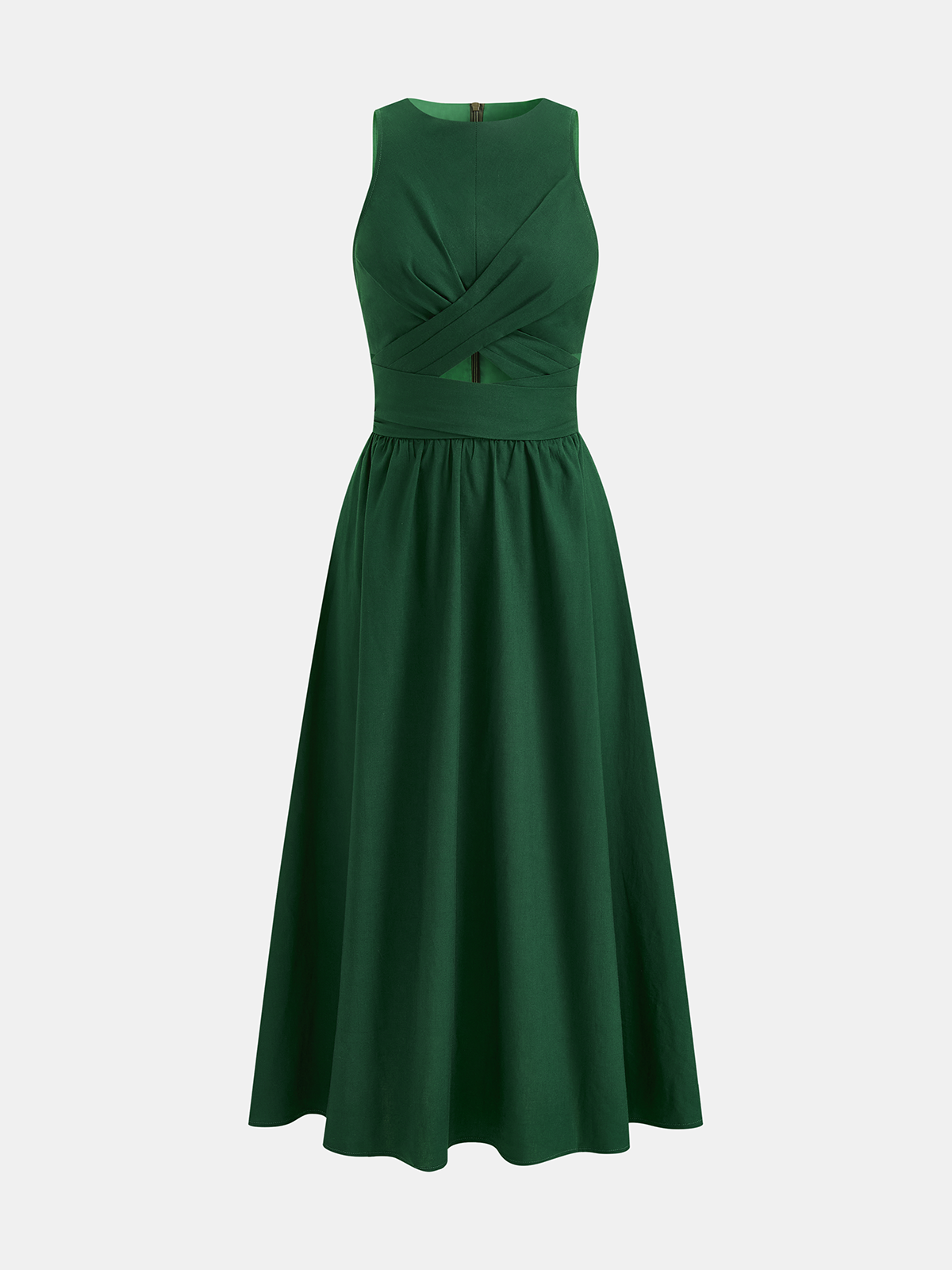 casual,clothing,coll:dresses,coll:linen_cotton,cotton&linen,crew neck,cross wrap,dresses,green,hollow,in_six_month,invisible zipper,midi,minegence,no,not_low_sales,oa260119026,regular,regular fit,sleeveless,slight stretch,umbrella hem,women