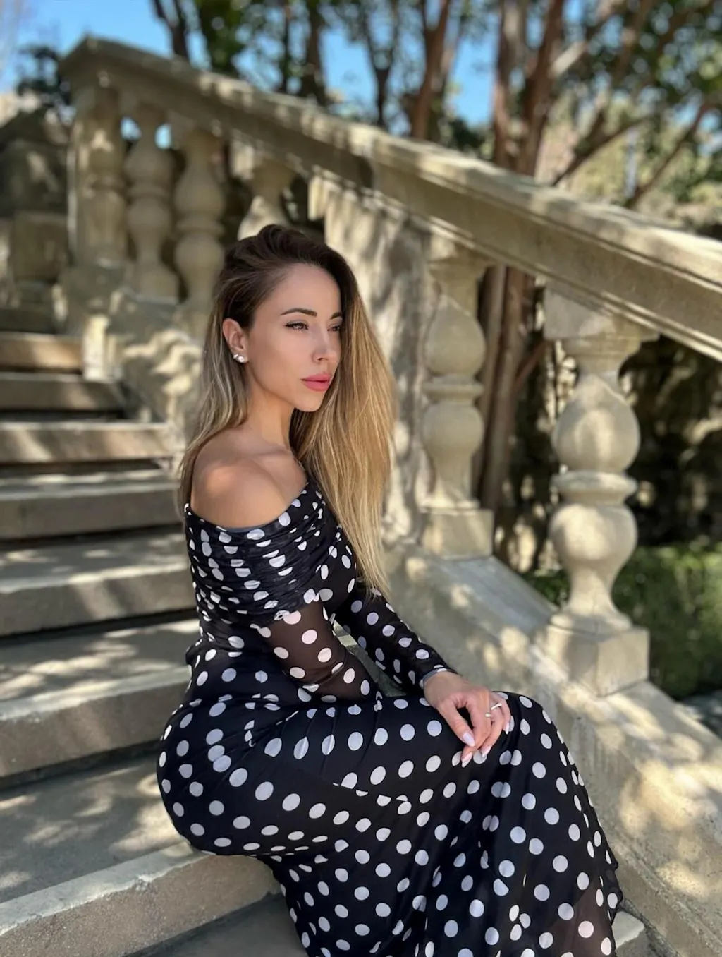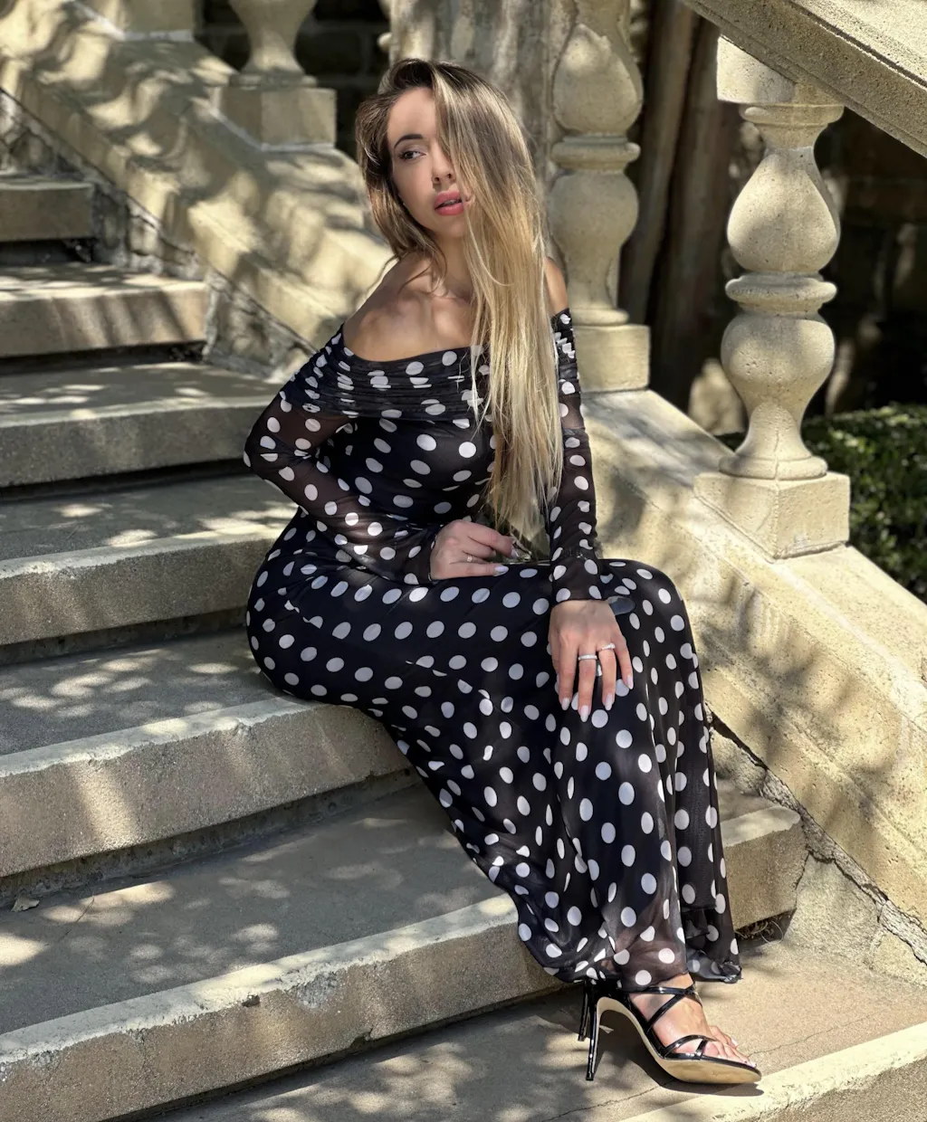 Long Sleeve Off-Shoulder Polka Dot Print Long Dress