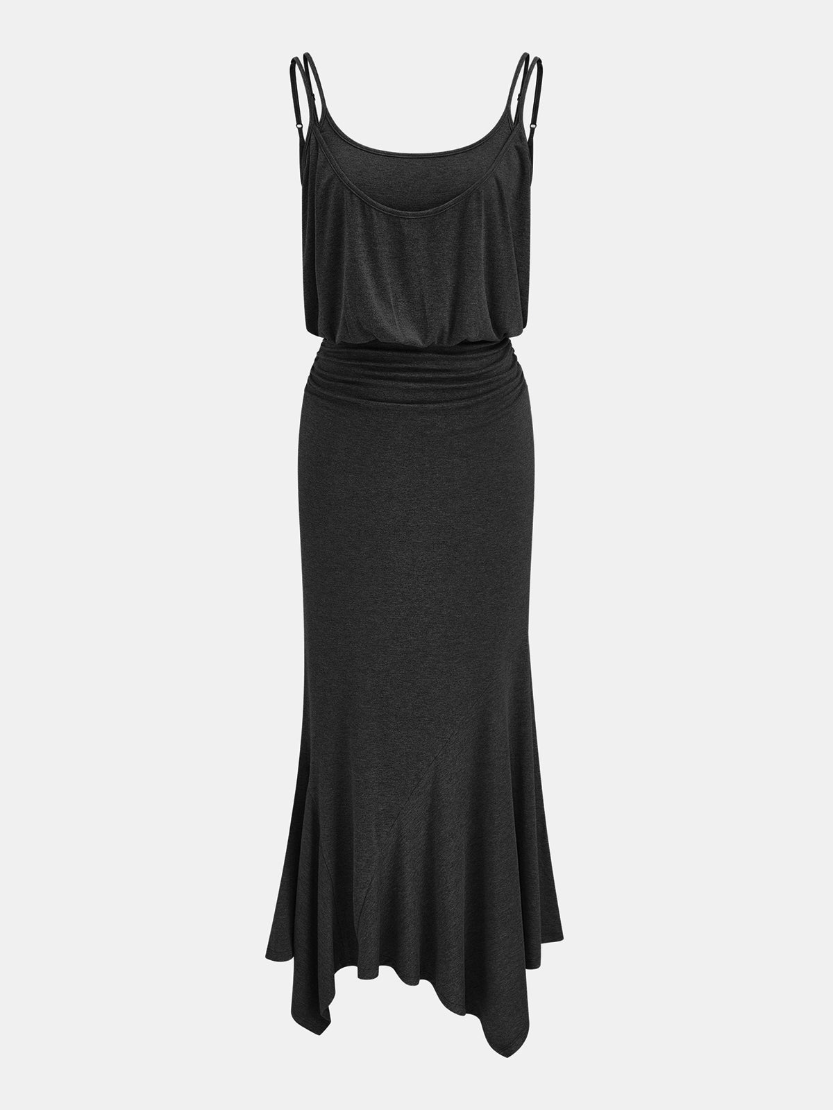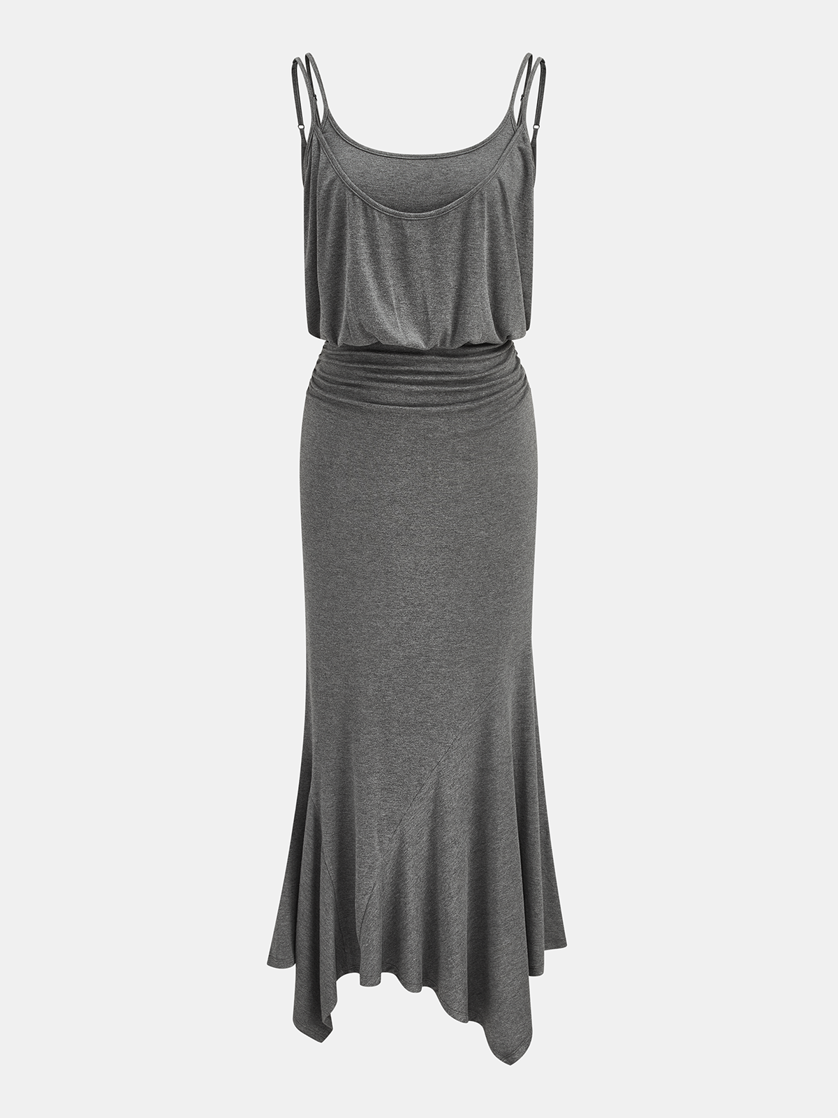 asymmetric,black,bloused waist,casual,clothing,coll:dresses,collarless,drape,dresses,grey,in_six_month,jersey,medium stretch,midi,minegence,no,not_low_sales,oa260109041,regular,regular fit,sleeveless,women