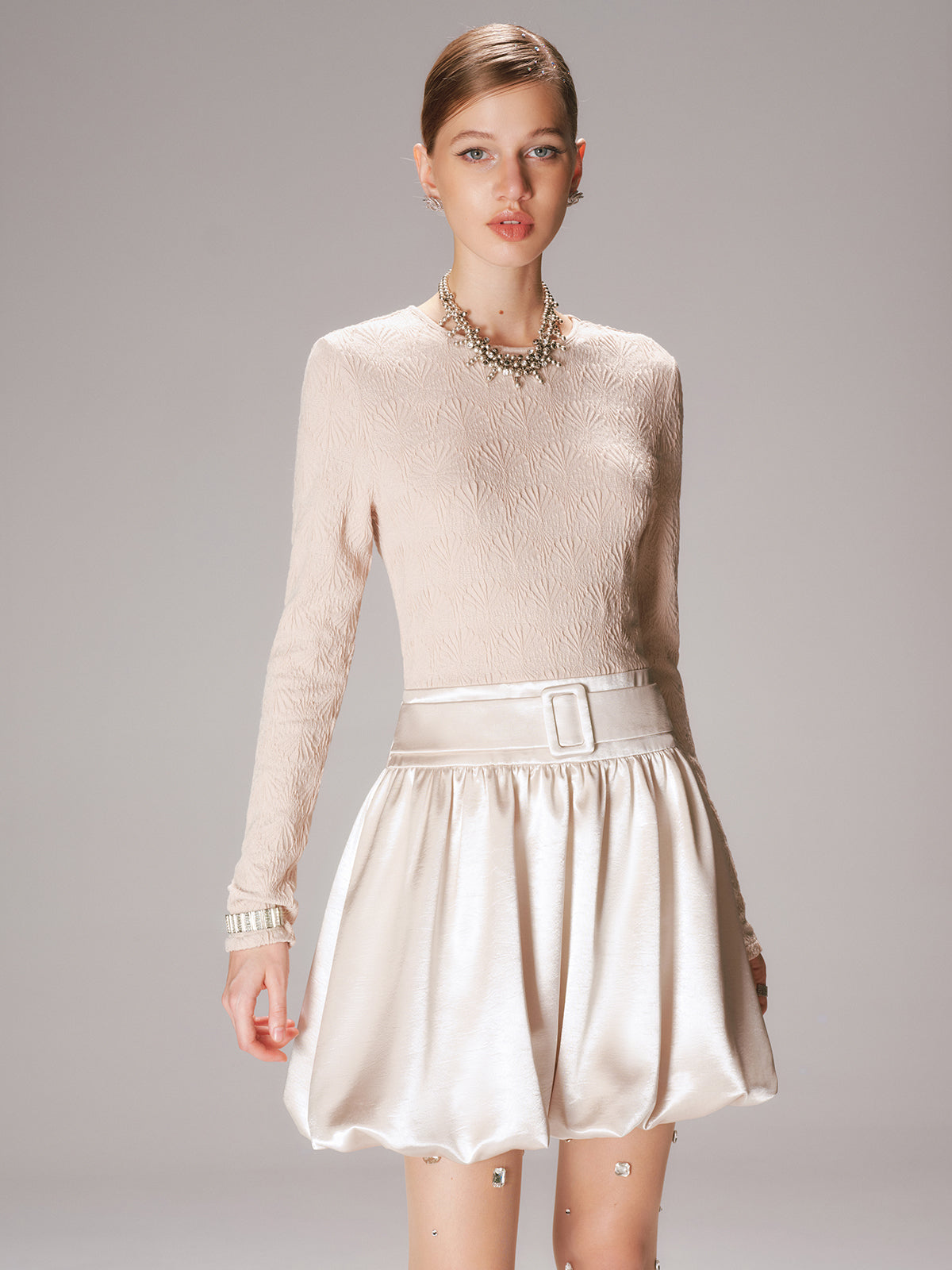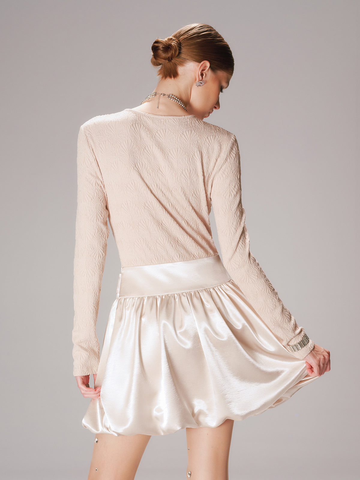 25 christmas,apricot,cathryn-t,clothing,coll-2025-11-14,coll:dresses,coll:night_glam,crew neck,date,dresses,fall,in_six_month,inner sample,invisible zipper,long sleeve,mechanism knitting,medium stretch,minegence,mwt,no,not_low_sales,oa250926031,party,patchwork,photo_model,regular,regular fit,short,spring,winter,women,woven fabric