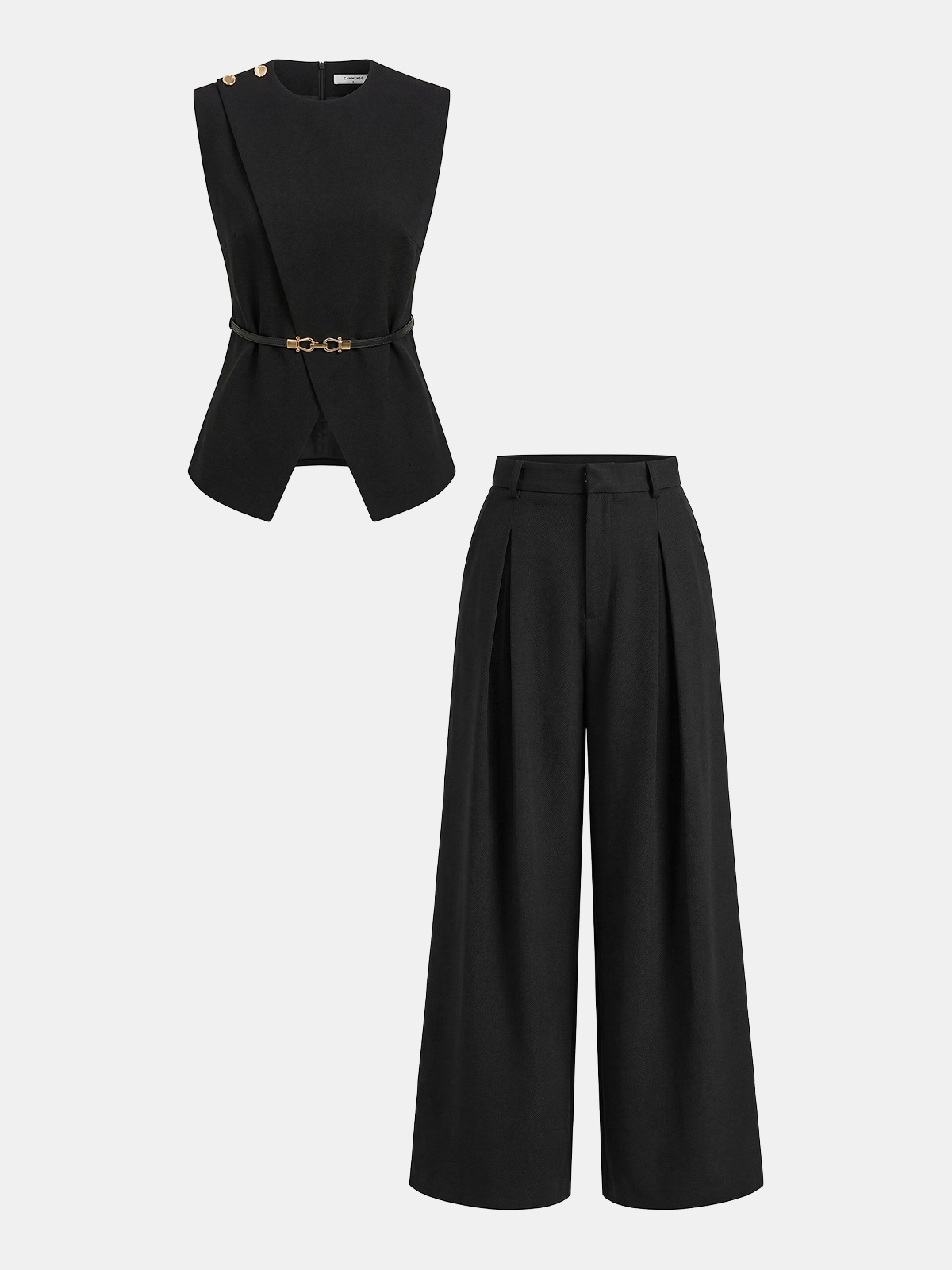 Sleeveless Belted Top & Pleated Pants Set
