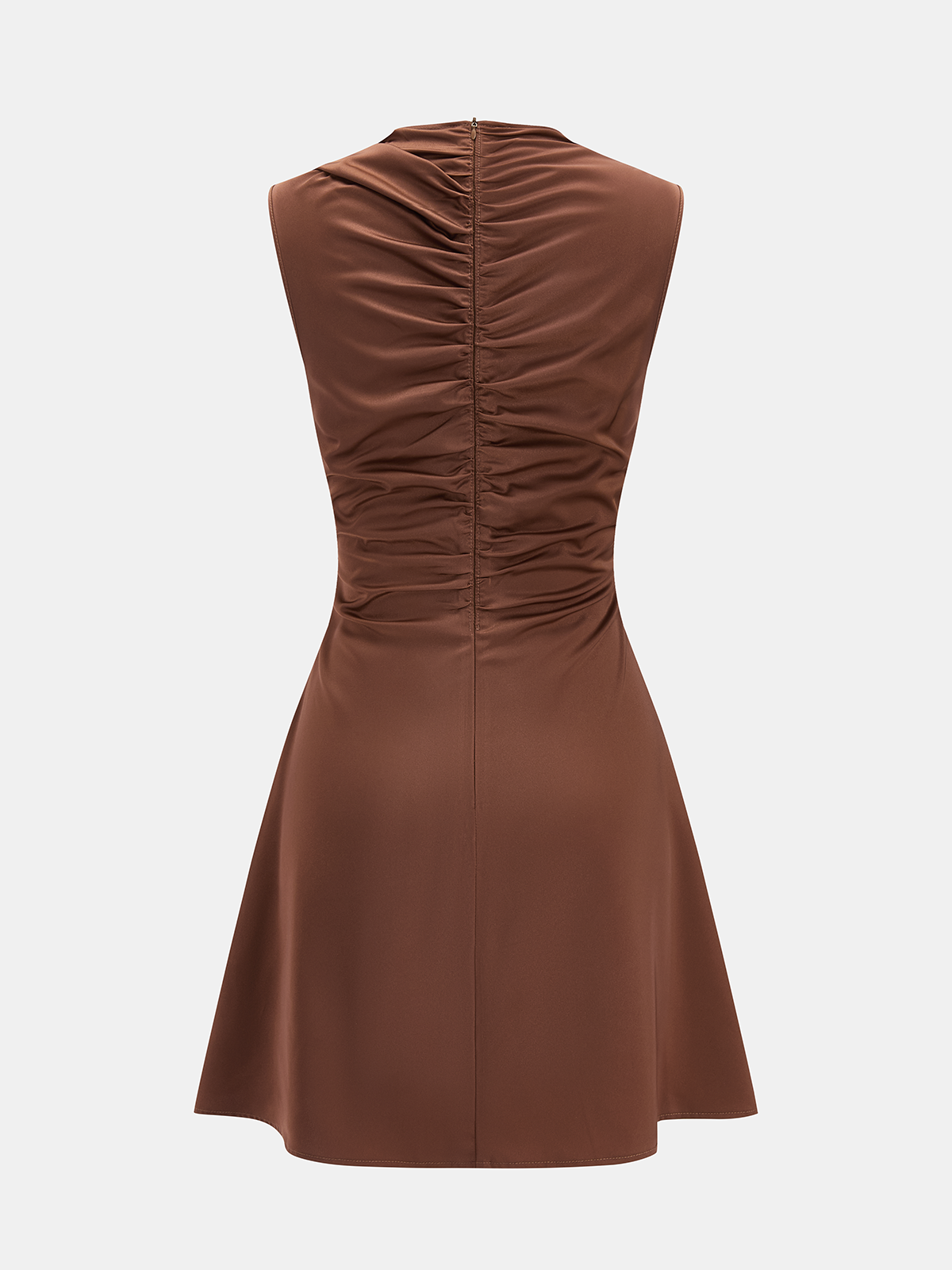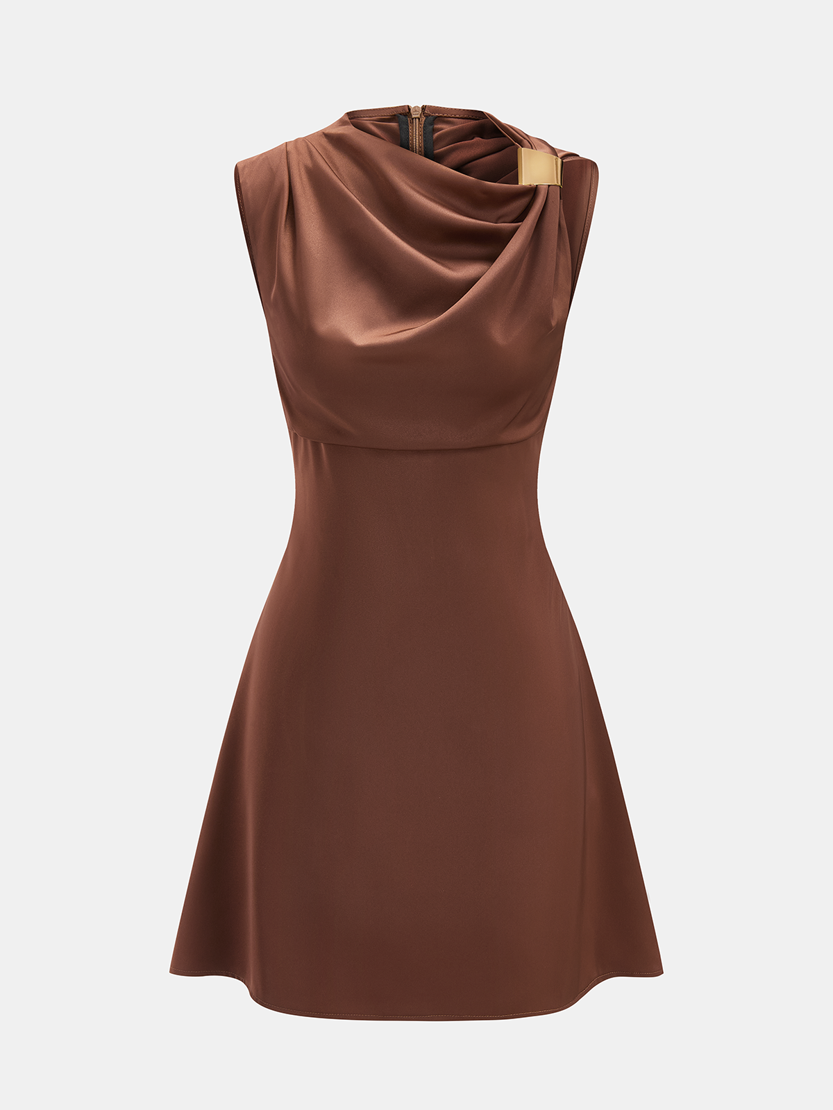 asymmetric,asymmetrical neck,brown,clothing,coll:dresses,corpcore,date,drape,dresses,feminine,in_six_month,invisible zipper,metal detail,no,non-stretch,not_low_sales,oa260128008,regular fit,satin,short,sleeveless,thin,women