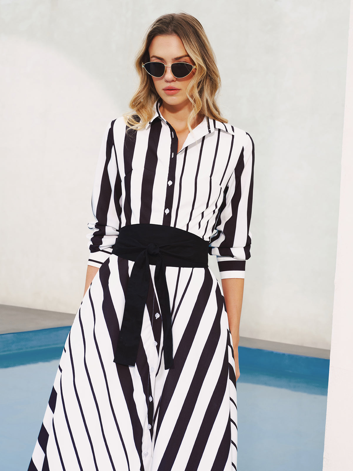 belted,blackandwhite,casual,clothing,coll:dresses,collar,corpcore,dresses,in_six_month,long sleeve,midi,minegence,no,non-stretch,not_low_sales,oa251223042,off-shore collective,photo_model,regular,regular fit,stripe,umbrella hem,women,woven fabric