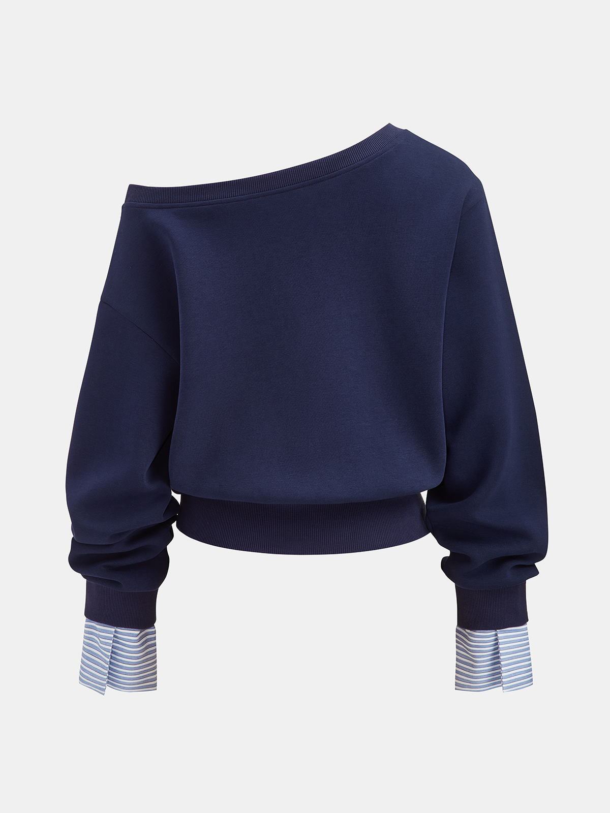 asymmetrical neck,basic - designer,casual,clothing,coll:sweatshirts_hoodies,coll:tops,date,fall,in_six_month,long sleeve,medium stretch,minegence,navy,no,not_low_sales,oa251107056,regular,regular fit,spring,sweatshirt fabric,sweatshirts,tops,winter,women