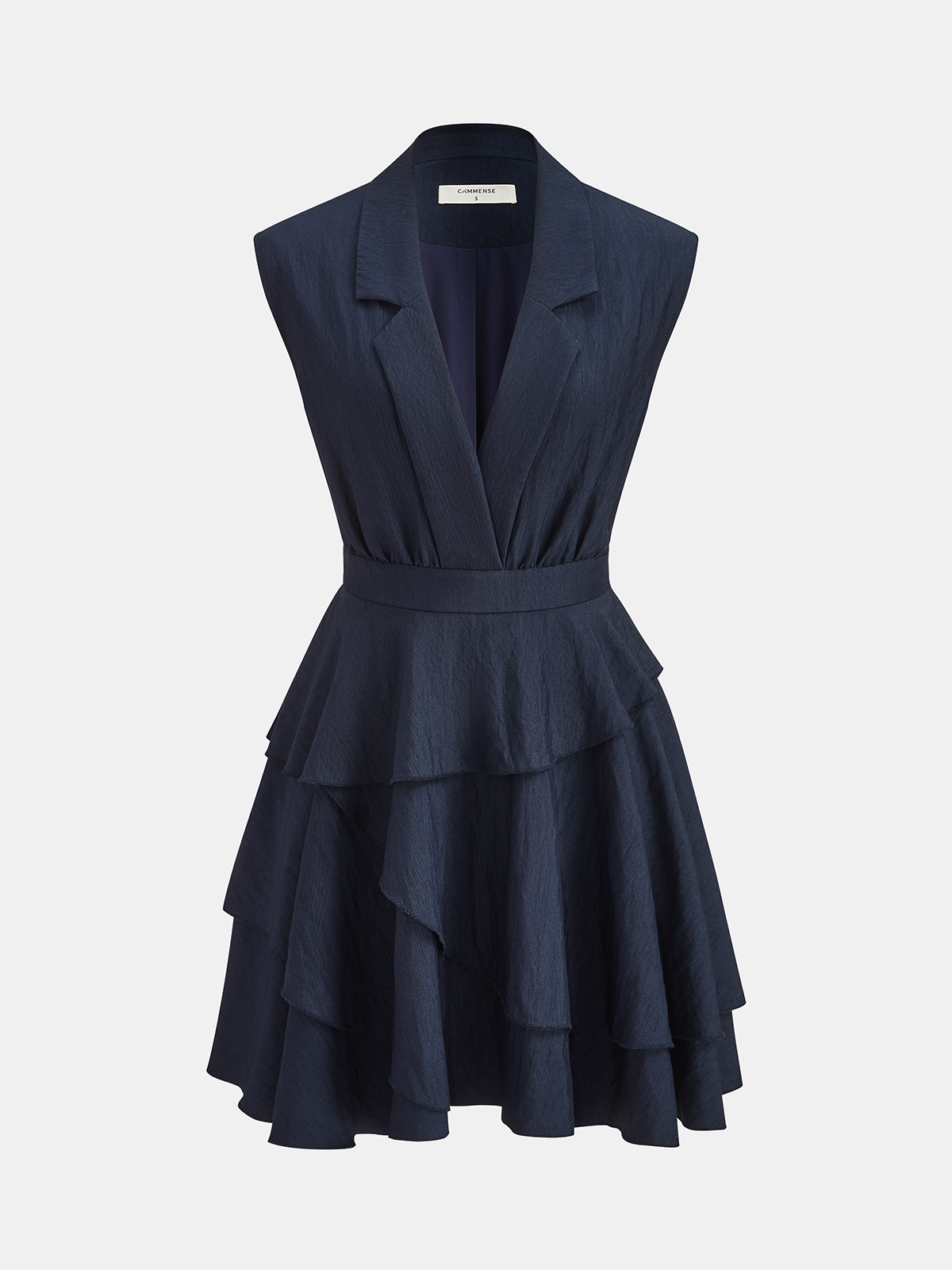 asymmetric,casual,clothing,coll:blazers,coll:dresses,corpcore,dresses,in_six_month,minegence,navy,no,non-stretch,not_low_sales,oa251121034,regular,regular fit,ruffle,shawl collar,short,sleeveless,women,woven fabric