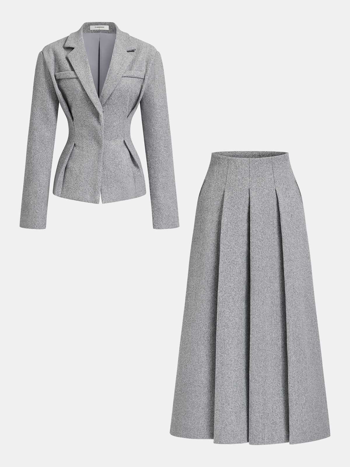 basic - fabric,casual,clothing,coll:matching_sets,coll:old_money,coll:skirts,corpcore,fall,grey,in_six_month,minegence,non-stretch,not_low_sales,oa251029017,regular,regular fit,sets,skirt sets,warm,winter,women,woven fabric