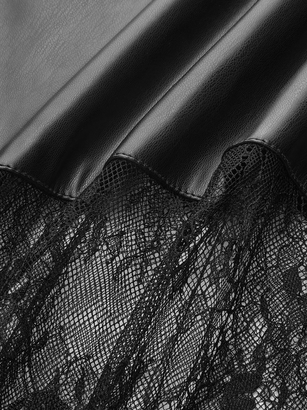 Lace Panel Faux Leather Asymmetrical Cami Dress