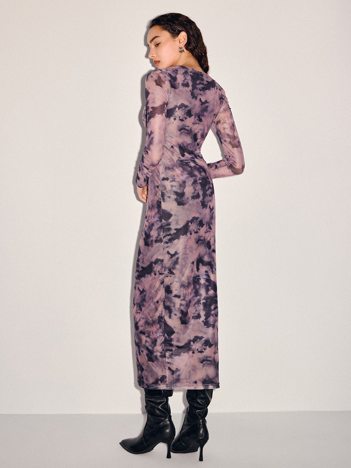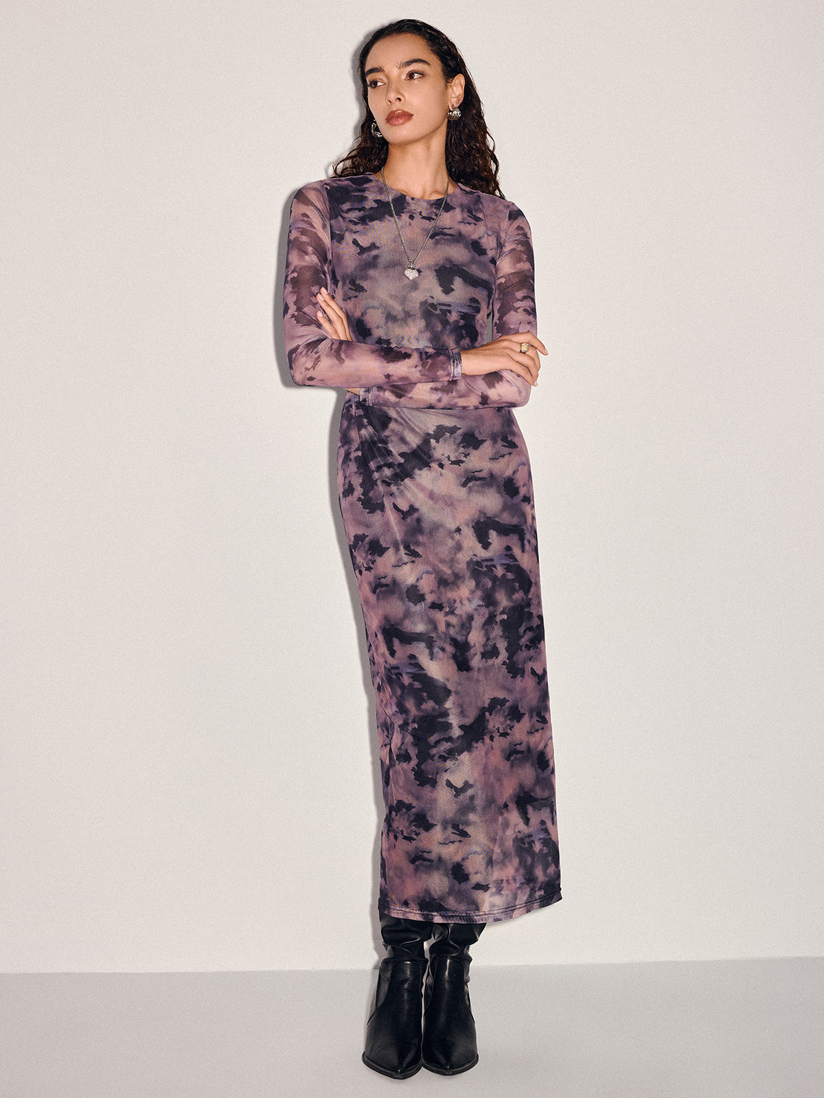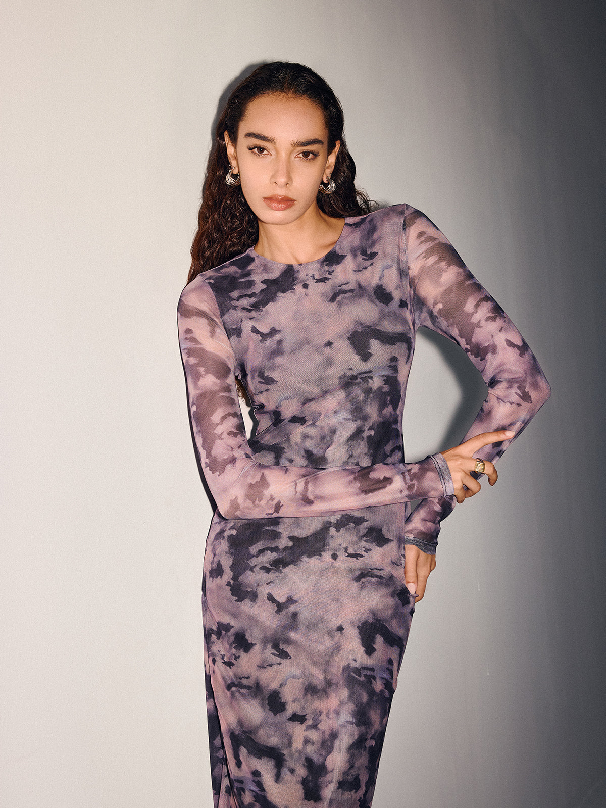 casual,clothing,coll:dresses,corpcore,crew neck,dresses,fall,high stretch,in_six_month,long sleeve,maxi,mesh,minegence,no,not_low_sales,oa251015009,purple,regular,regular fit,spring,tye dye print,winter,women
