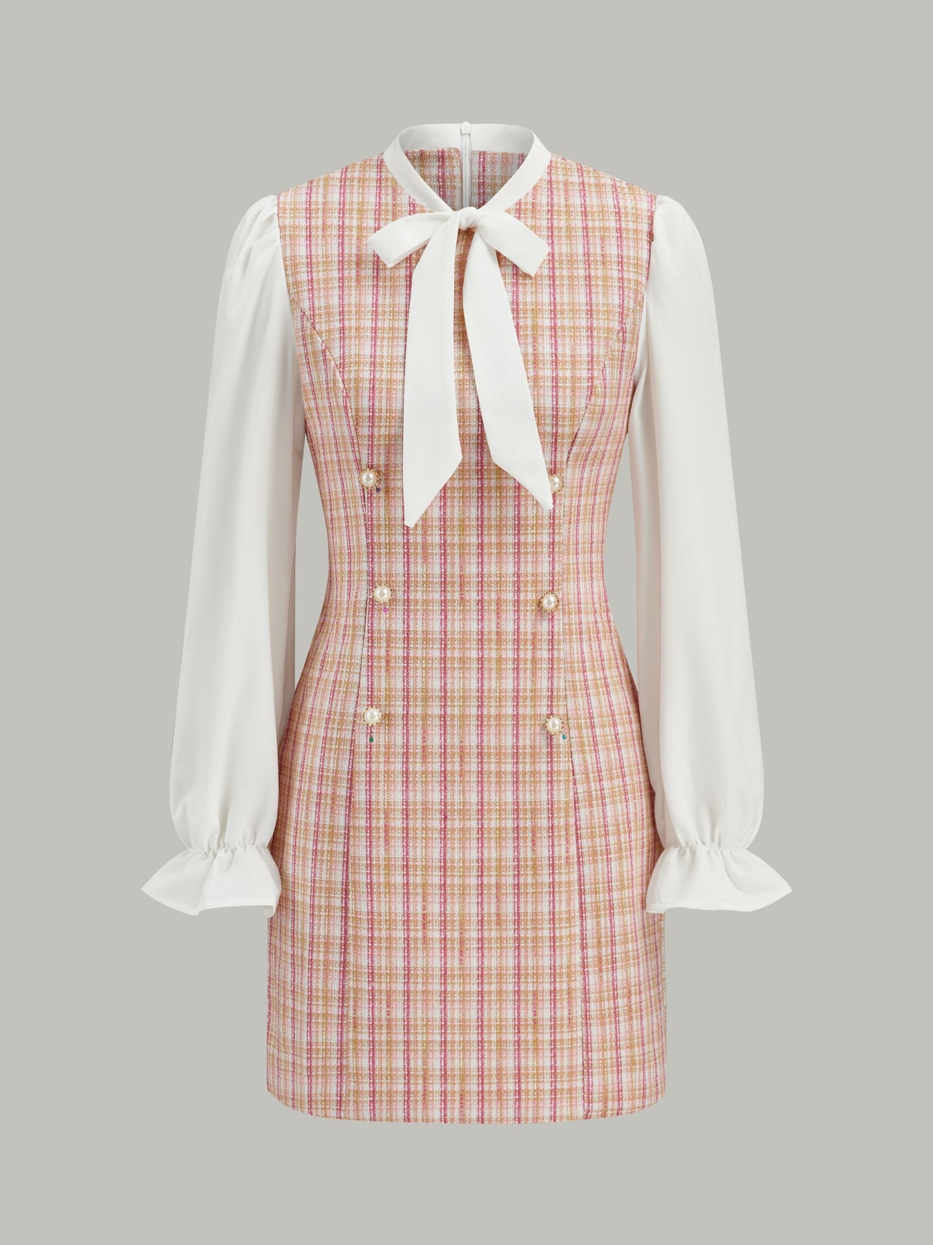 1688 online,bow,clothing,coll:dresses,coll:plaids_polka,coll:vacation,coll:weekend_getaway,crew neck,daily,date,date-2025,dresses,elegant,fall,in_six_month,invisible zipper,long sleeve,low_sales,no,non-stretch,oa250723069,occasion,pink,plaid,regular,romantic/vintage,short,slim fit,spring,vacation,winter,women,woven fabric
