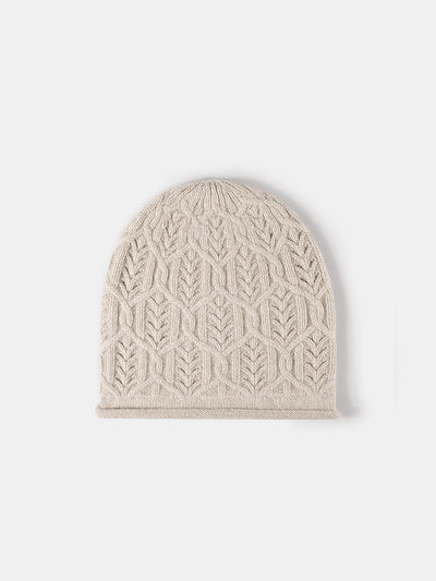 Leaf Cable Pattern Wool Knit Beanie