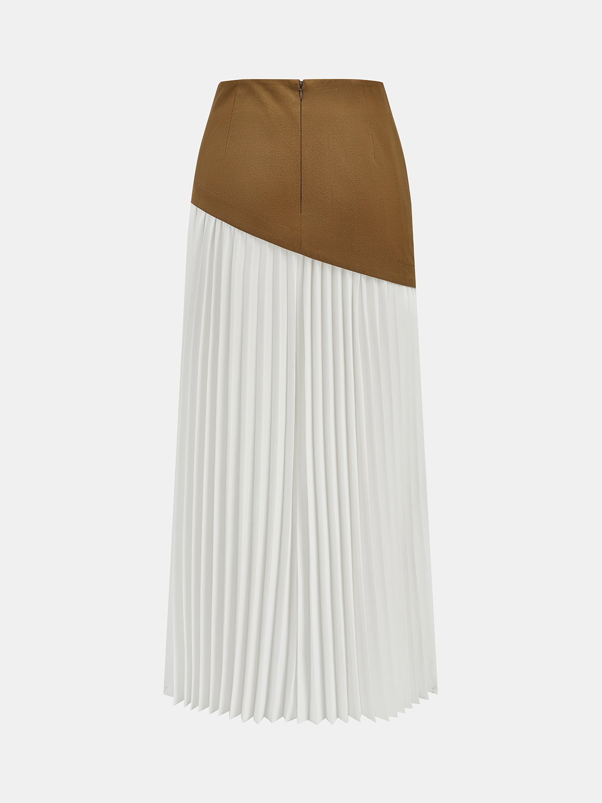 Suede Effect Panel Asymmetric Pleated Maxi Skirt