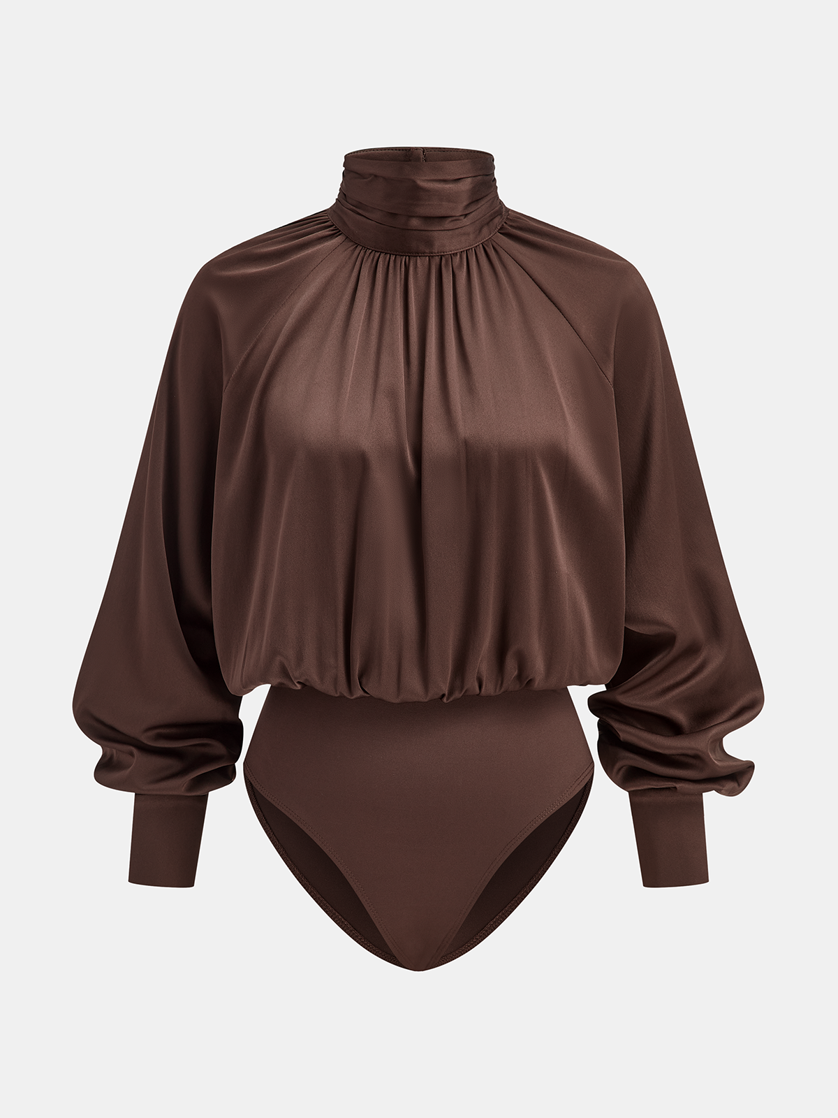 bodysuits,casual,clothing,coll:tops,corpcore,dark brown,fall,feminine,high neck,in_six_month,inner sample,lingerie,long sleeve,no,not_low_sales,oa250928013,patchwork,regular,regular fit,satin,slight stretch,spring,tops,winter,winter hues,women