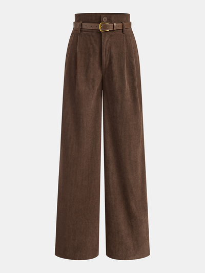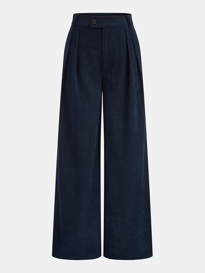 Corduroy Pleated Mid-Waist Wide-Leg Pants