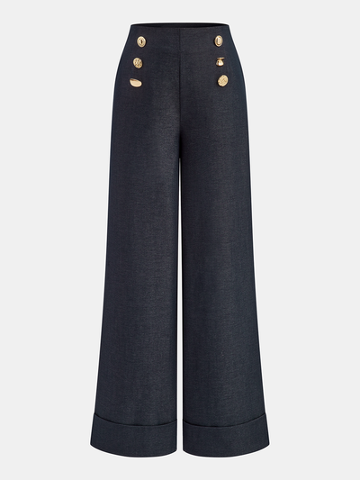 Metal Detail Mid-Waist Pleated Wide-Leg Pants