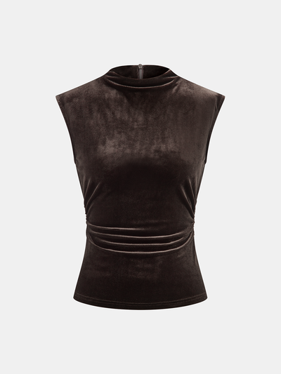 Mock Neck Ruched Velvet Sleeveless Top