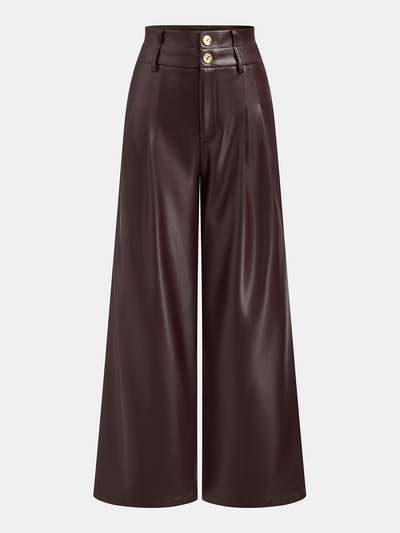 Double Waistband Faux Leather Pants