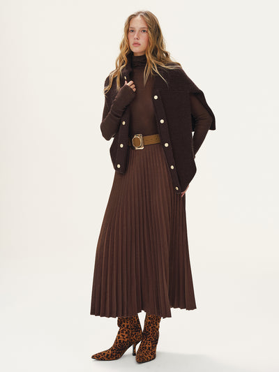 Belted Suede Effect Pleated Midi Skirt