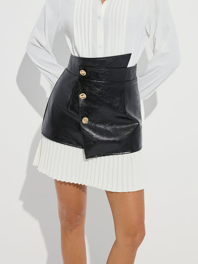 Pleated Panel Faux Leather Asymmetric Mini Skirt