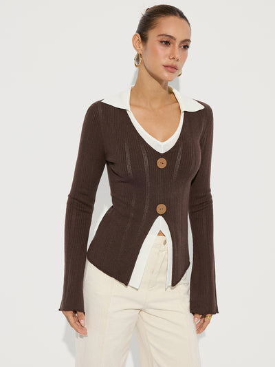 Contrast Collar Wool-Blend Knit Top