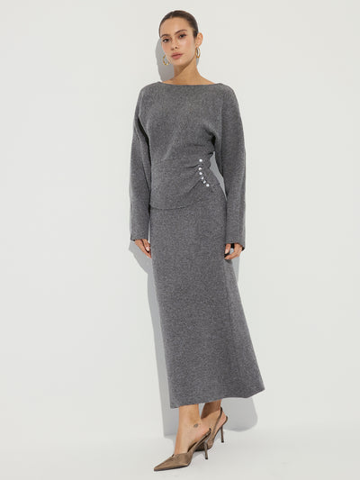 Knit Button Detail Top and Maxi Skirt Set