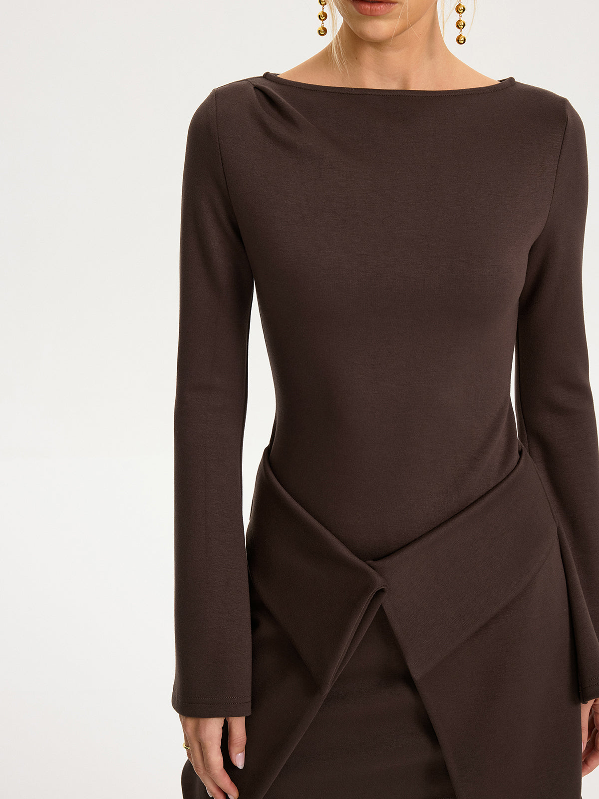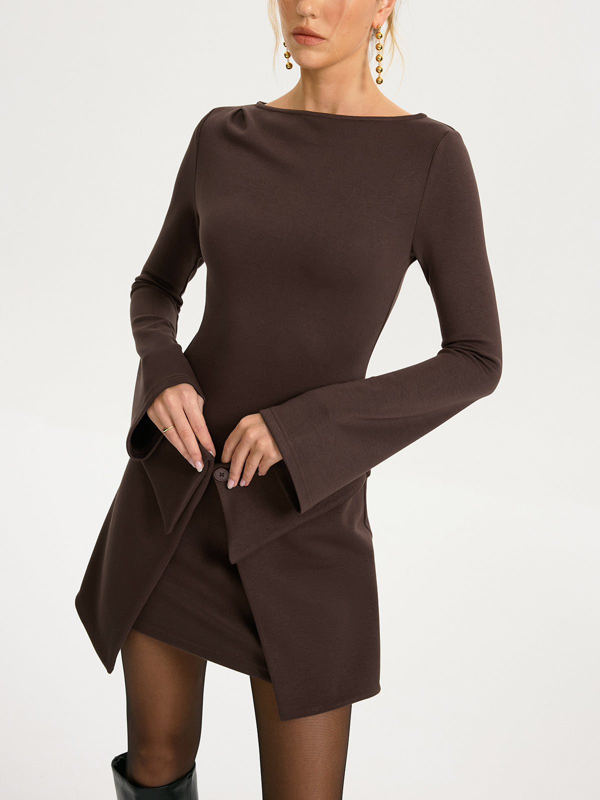 brown,casual,clothing,coll:dresses,crew neck,dresses,in_six_month,invisible zipper,jersey,long sleeve,medium stretch,minegence,mwt,no,not_low_sales,oa251112029,photo_model,regular,regular fit,short,winter hues,women
