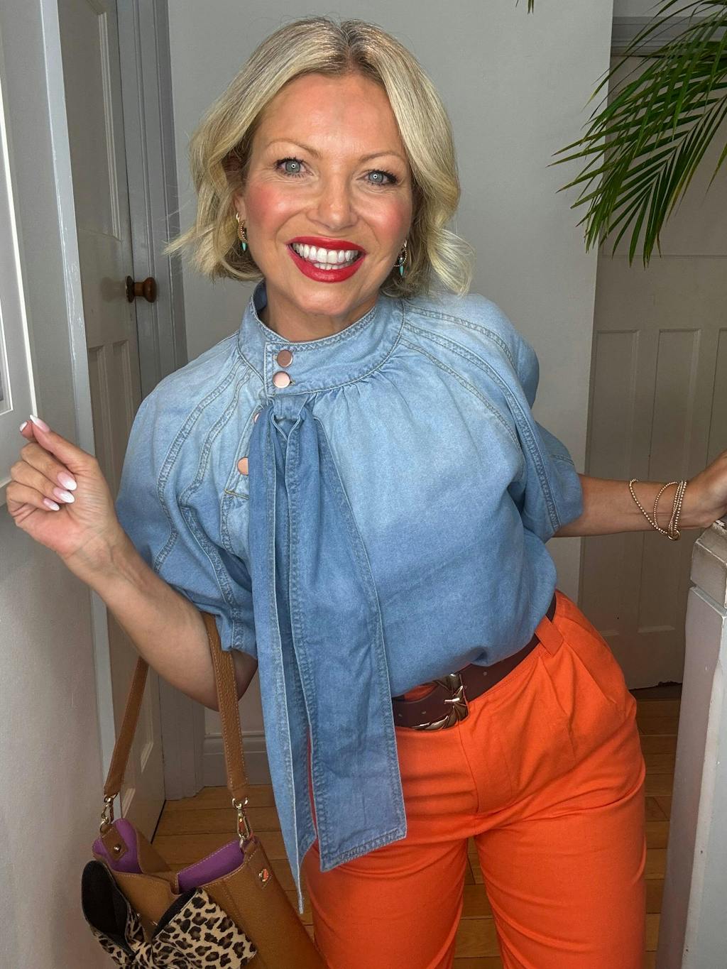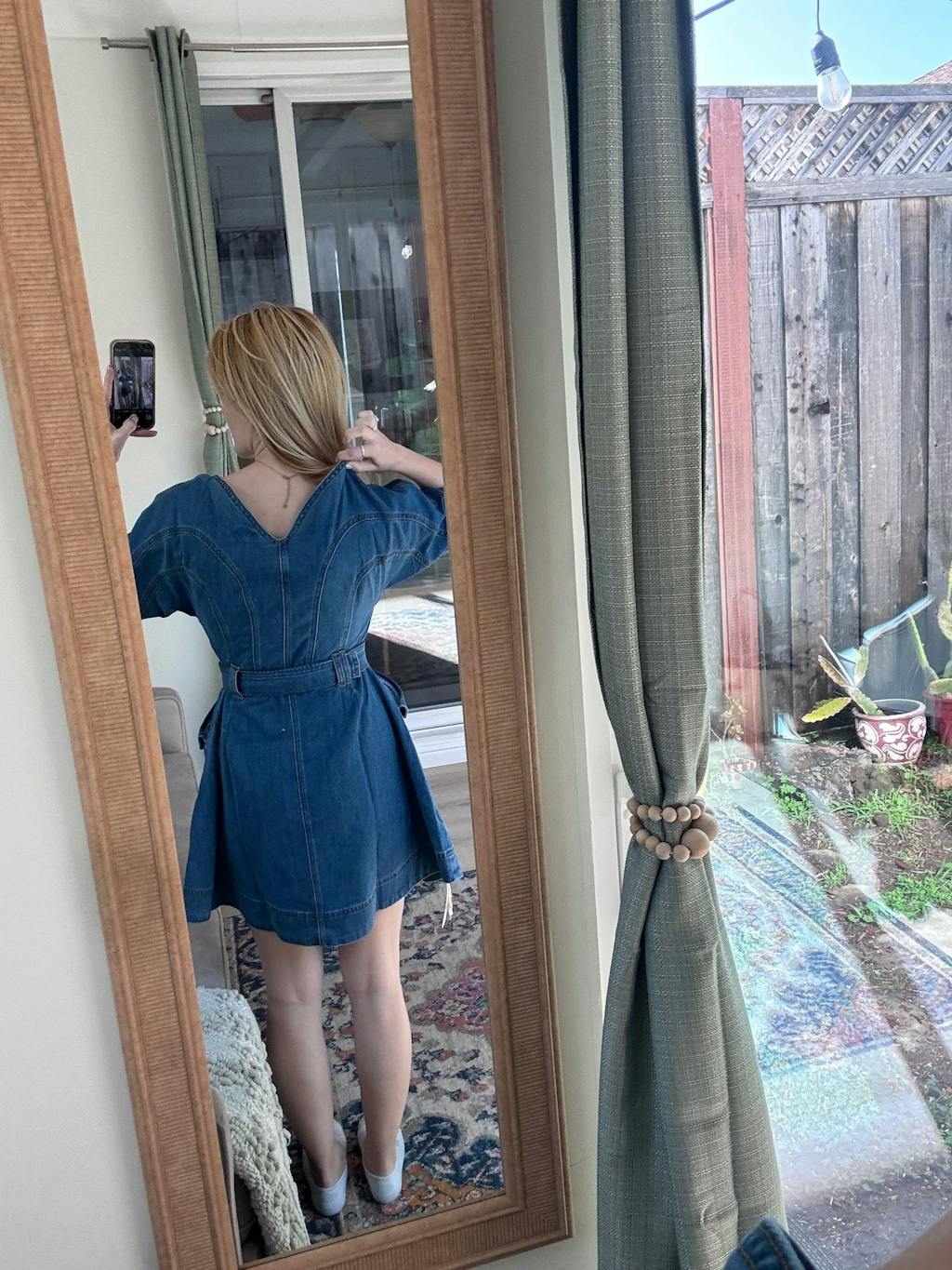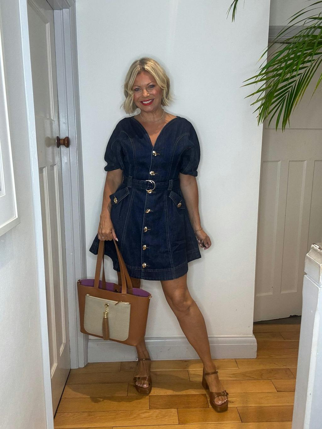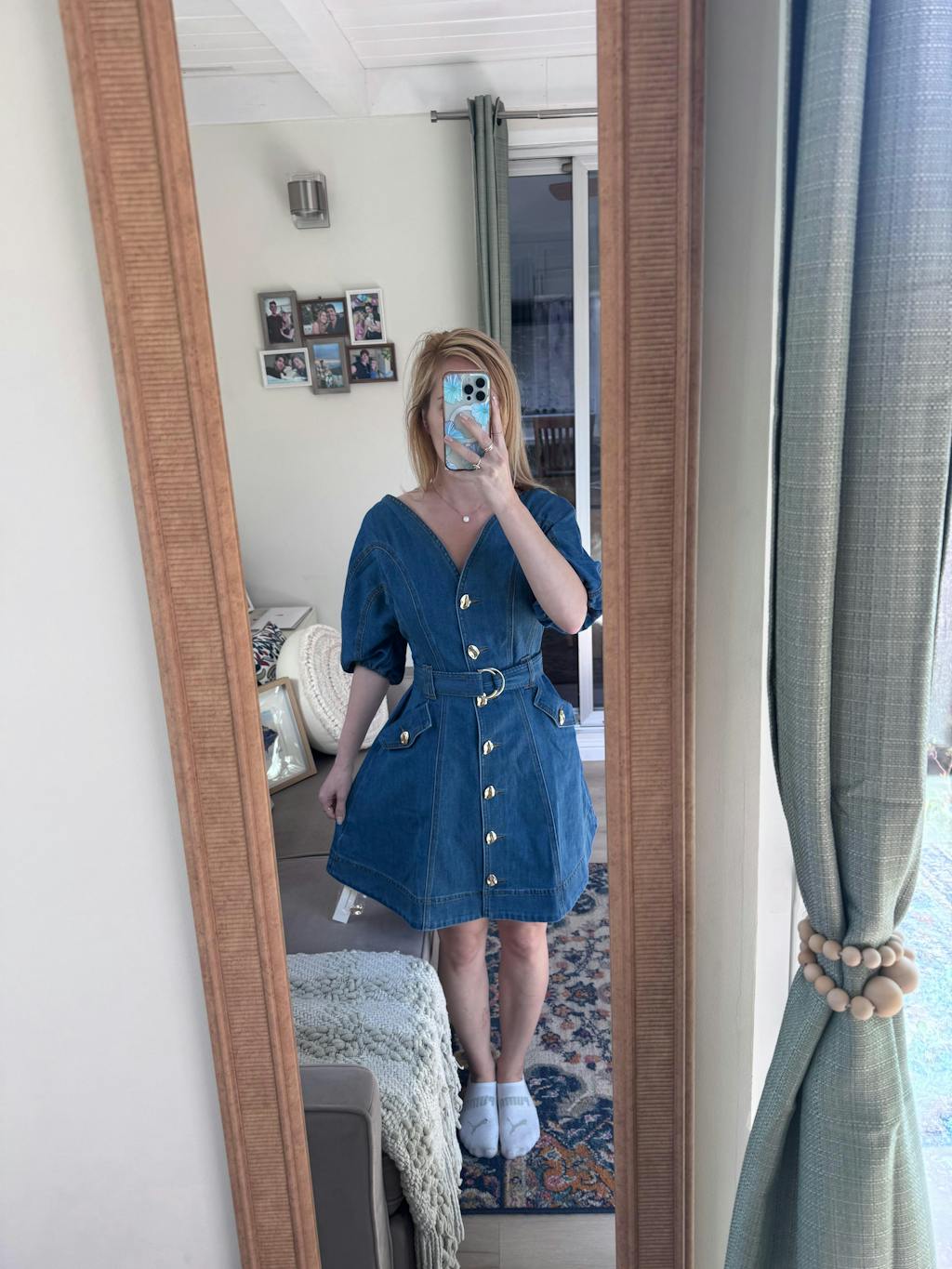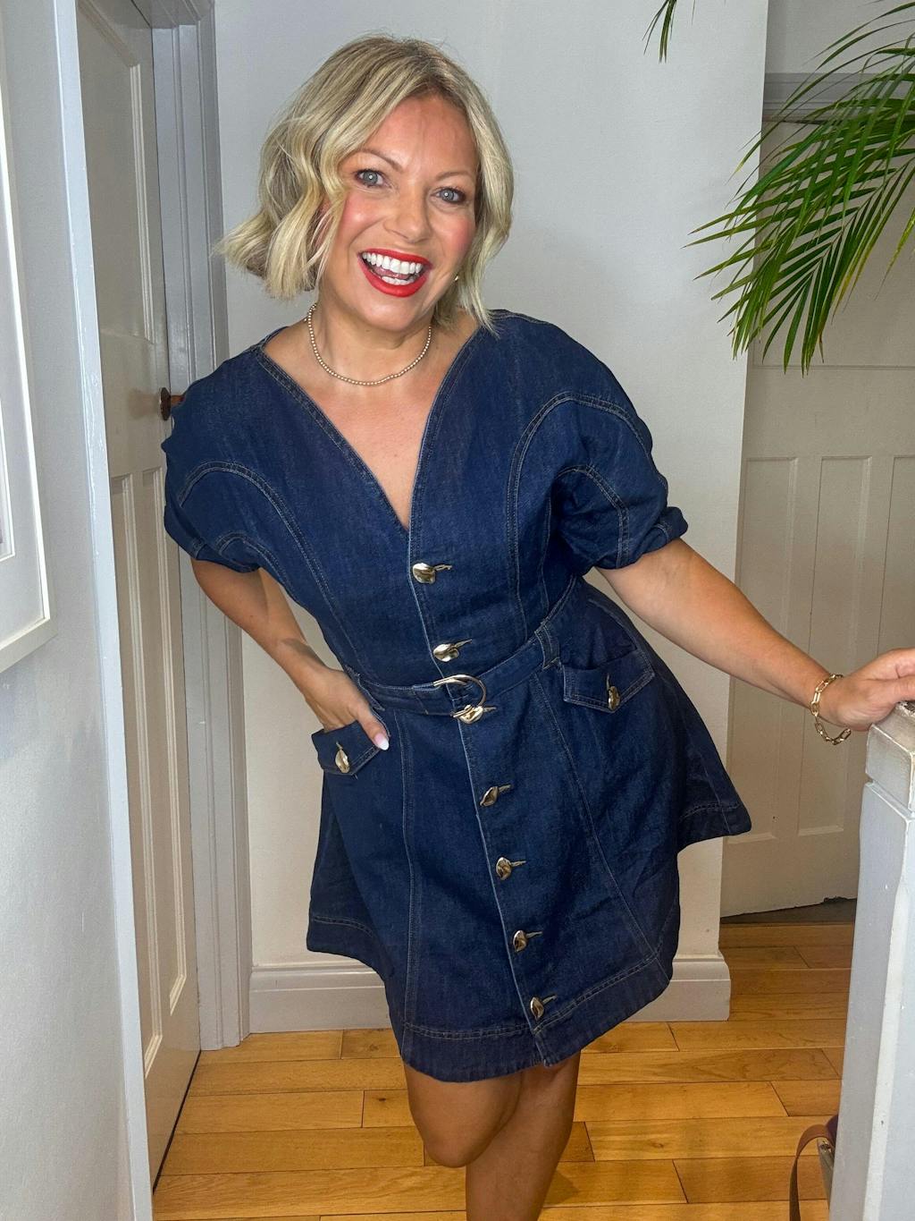 Love this dress. It’s perfect for date night or going out with girlfriends. I love that it hides the belly and heavy arms. Love it if it came in a colorful non denim fabric.