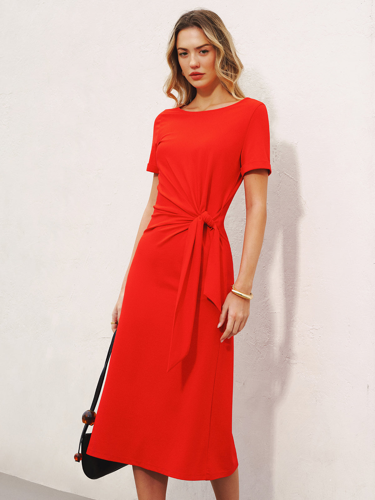 clothing,coll:dresses,corpcore,crew neck,dresses,in_six_month,jersey,medium stretch,midi,minegence,no,not_low_sales,oa251223054,off-shore collective,photo_model,red,regular,regular fit,short sleeve,summer hues,tied&knot,women