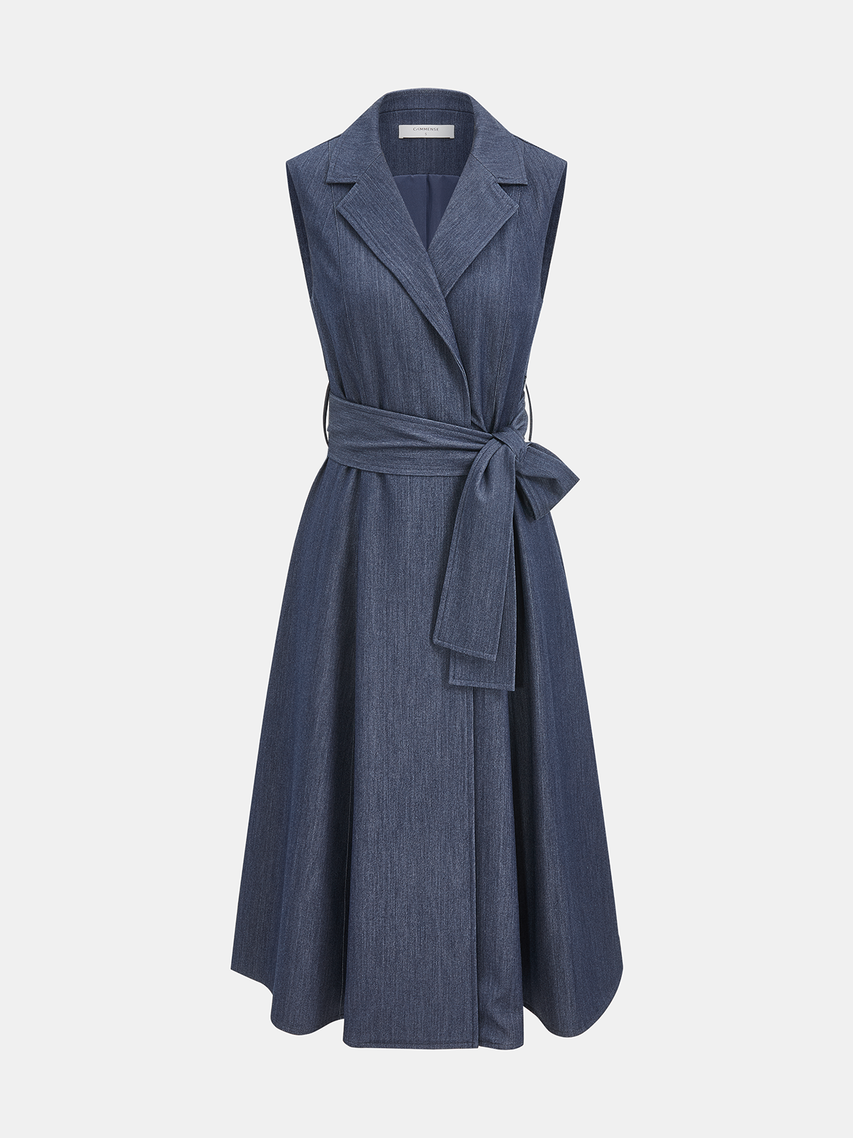asymmetric,belted,casual,clothing,coll:dresses,corpcore,dresses,in_six_month,midi,minegence,navy,no,non-stretch,not_low_sales,oa251213002,off-shore collective,regular,regular fit,shawl collar,sleeveless,umbrella hem,women,woven fabric