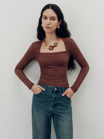 Off-Shoulder Fitted Ruched Long Sleeve Top