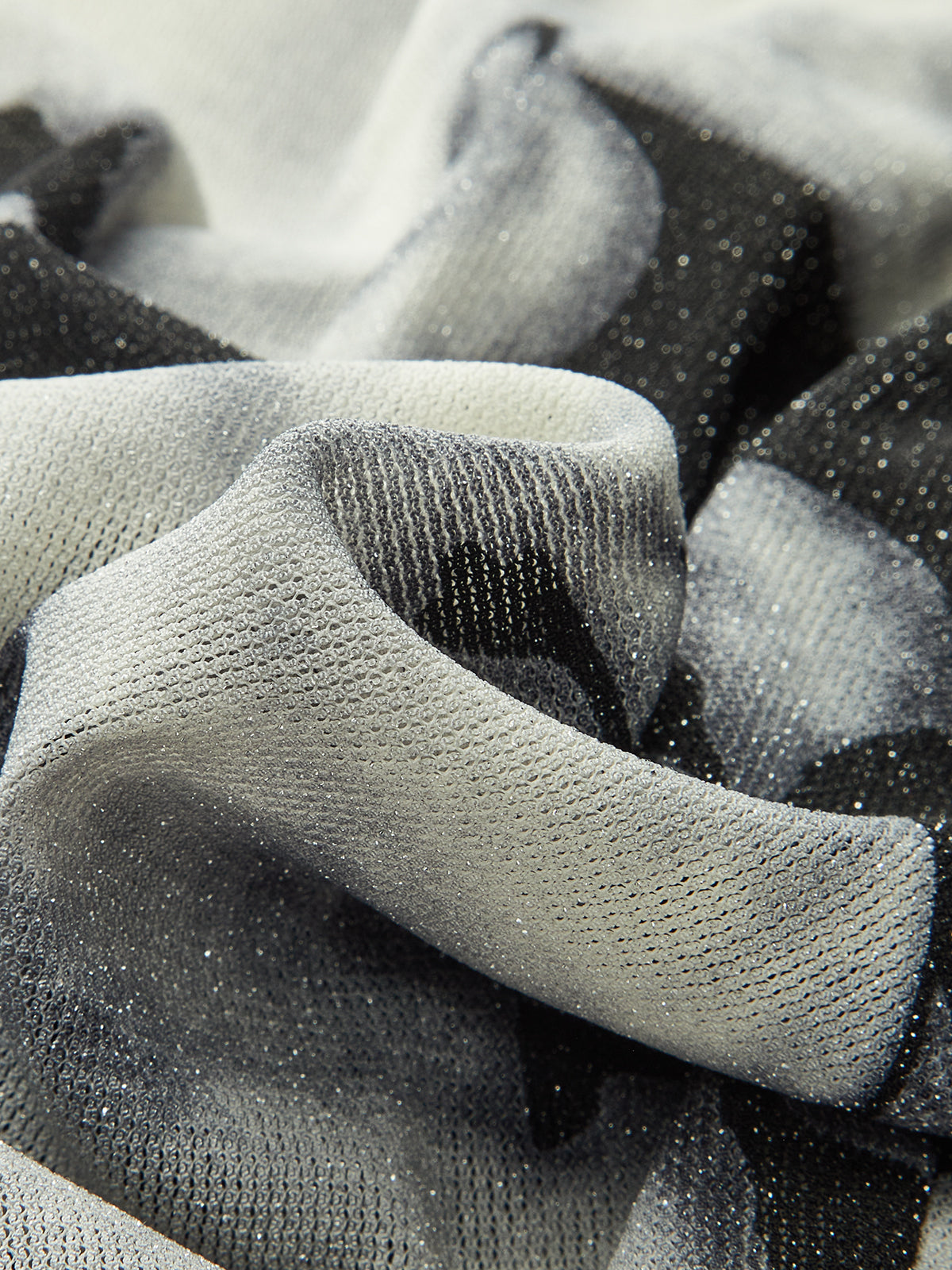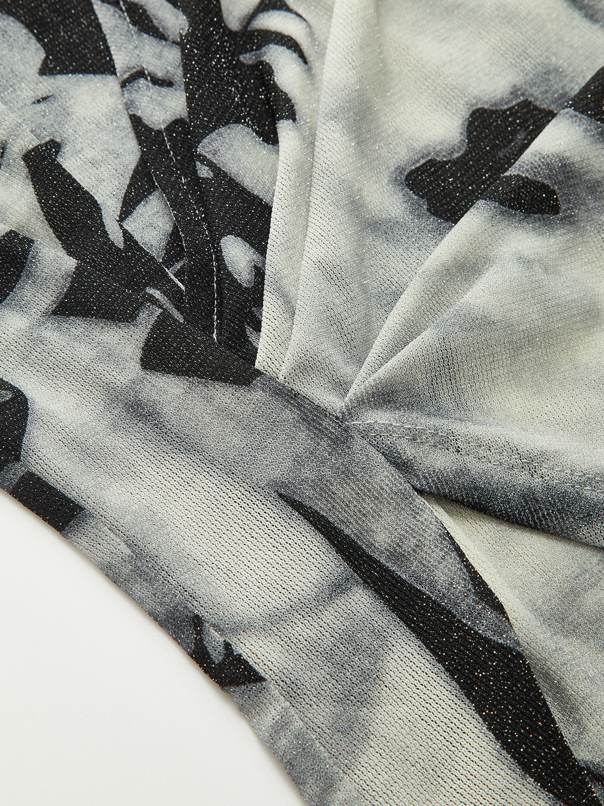 Semi-Sheer Long Sleeve Mesh Marble Print Wrap Blouse