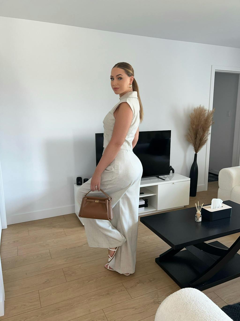 These pants are the definition of effortless elegance! The linen blend fabric is airy, breathable, and so comfortable — perfect for warm weather while still giving that polished look. The wide-leg cut flows beautifully with every step, creating a silhouette that’s both flattering and timeless.