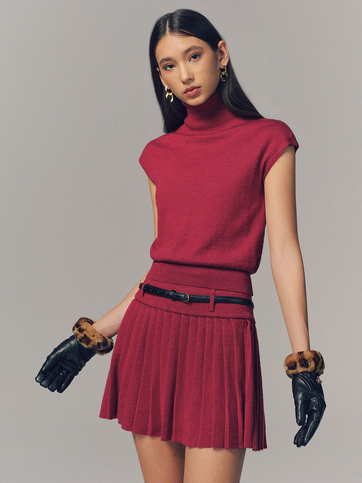 a-none,belted,casual,clothing,coll:matching_sets,coll:skirts,coll:trending,corpcore,fall,in_six_month,knit,minegence,non-stretch,not_low_sales,oa251020106,photo_model,red,regular,regular fit,sets,skirt sets,spring,winter,winter hues,women