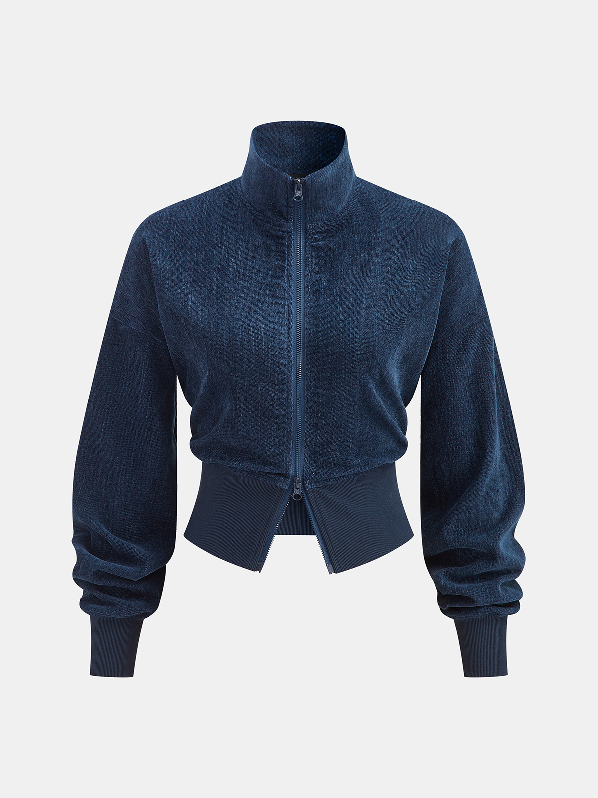 Velvet Zip-Up Jacket & Wide-Leg Pants Set