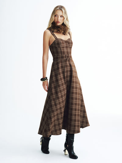 Belted Plaid Strappy Maxi Dress