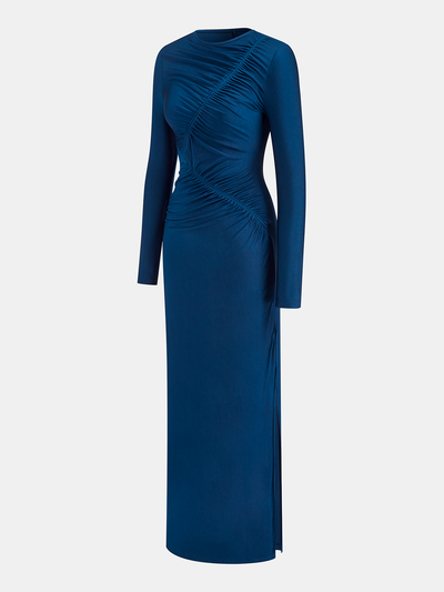 Ruched Long-Sleeve Maxi Dress