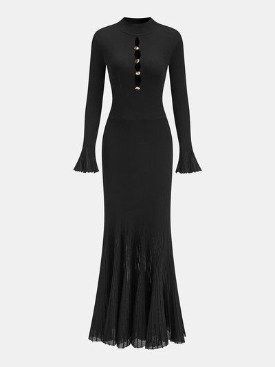 Metal Detail Cut-Out Ribbed Knit Maxi Dress