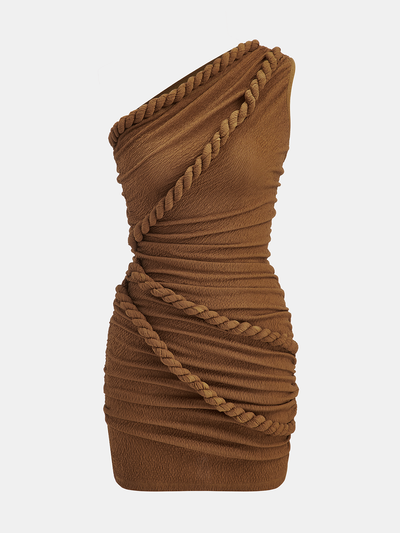 One-Shoulder Rope Ruched Mini Dress