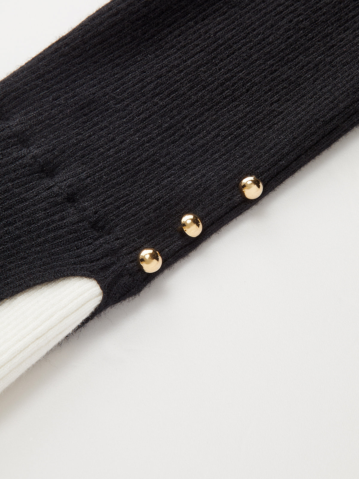 2 in 1 Contrast Cuff Mock Neck Ribbed Knit Top