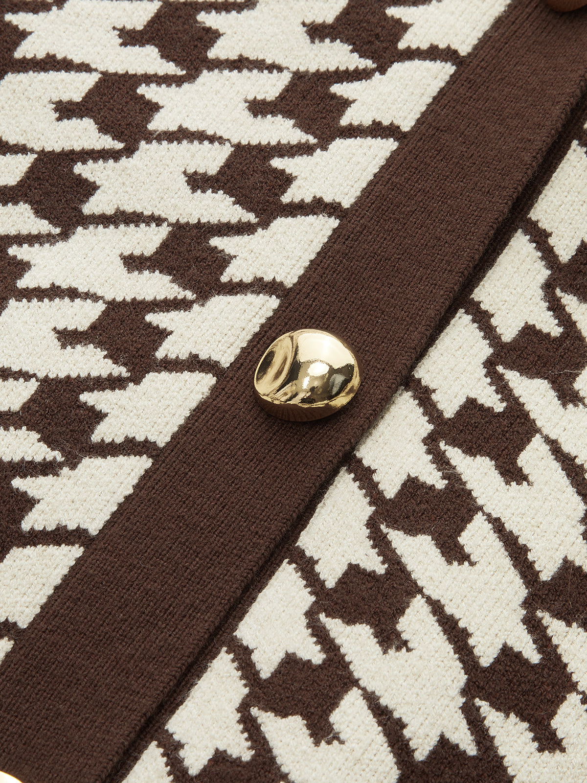 Houndstooth Puff-Sleeve Cropped Knit Cardigan