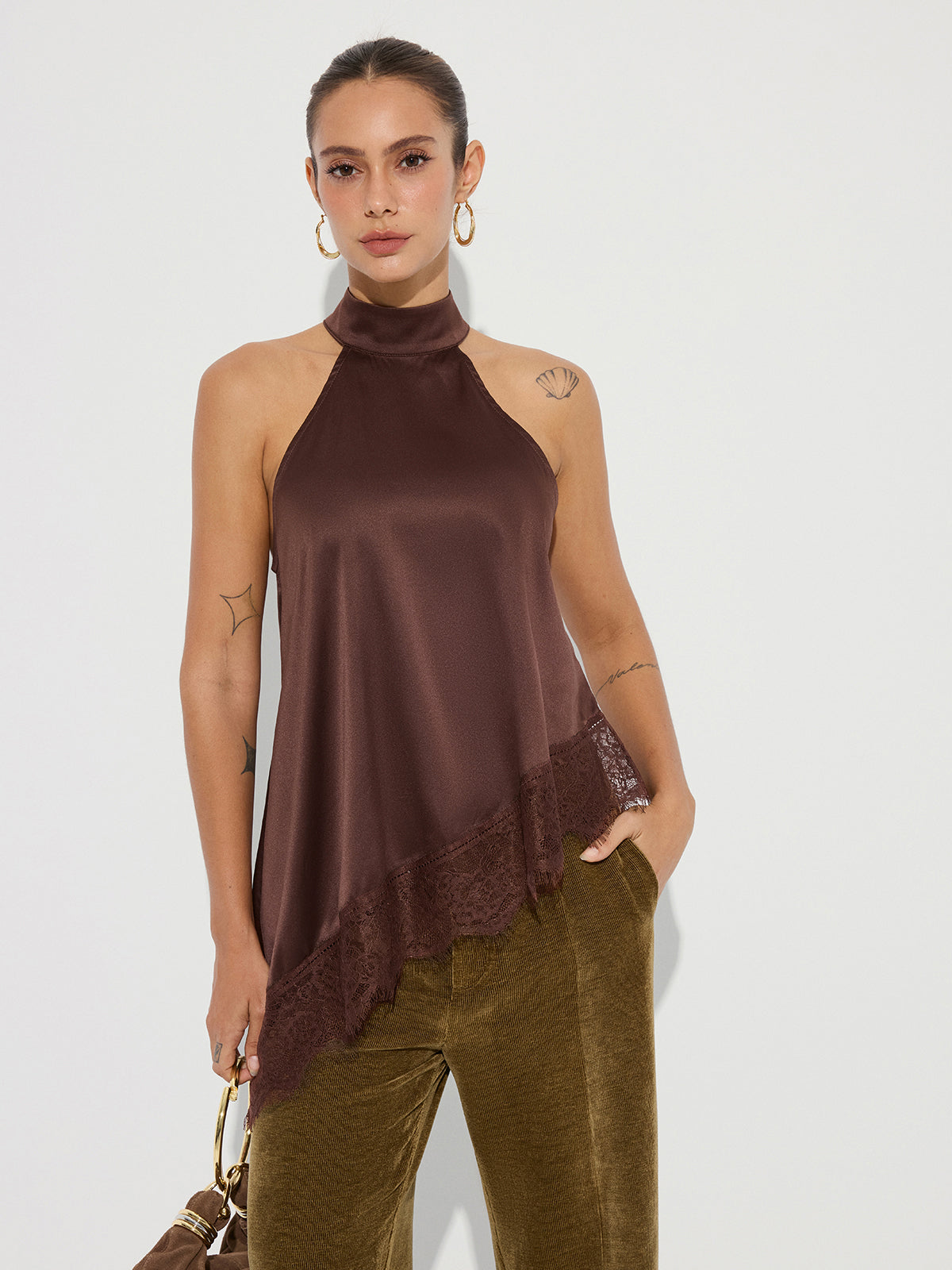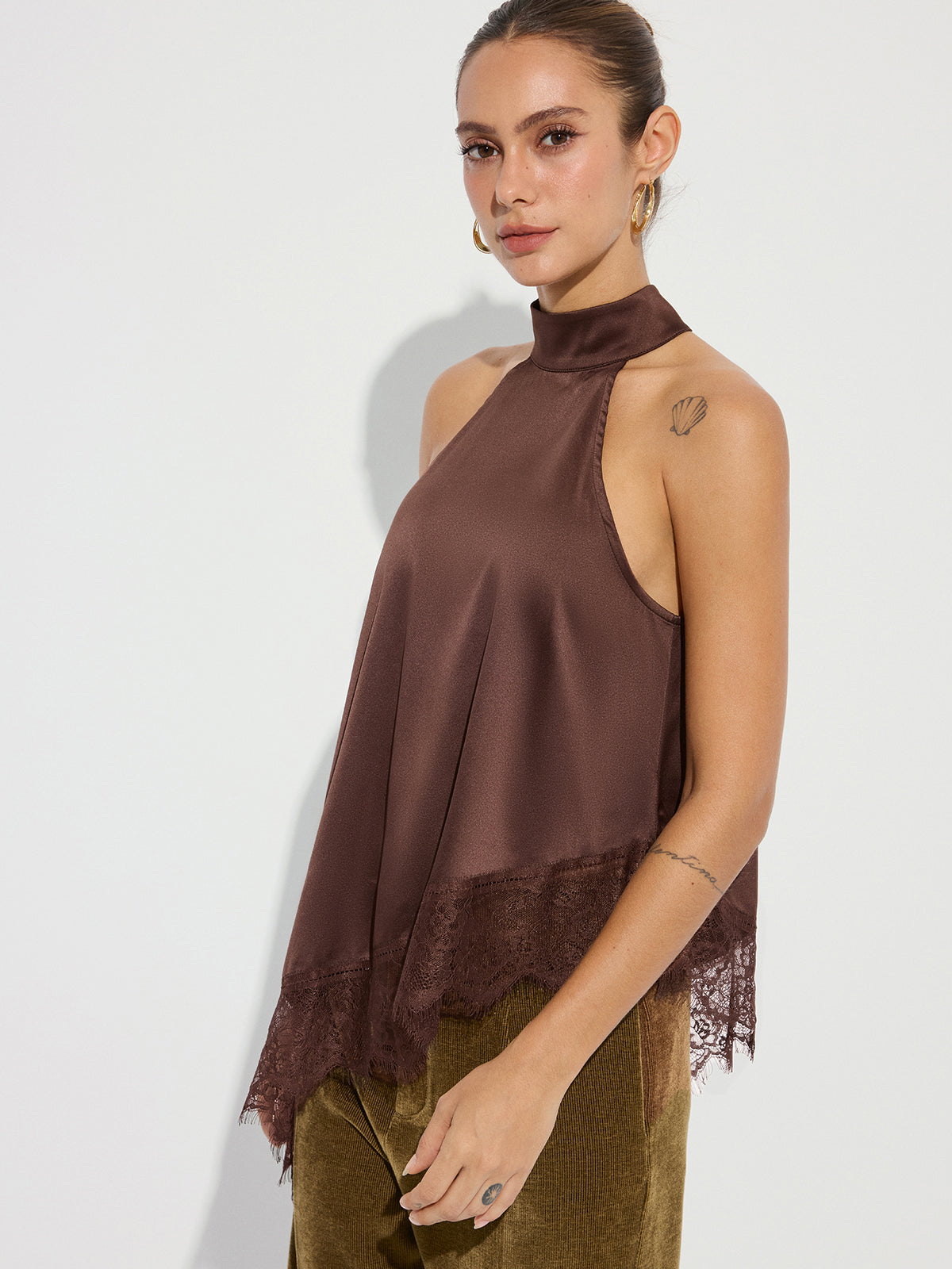 clothing,coll:tank_tops_camis,coll:tops,corpcore,dark brown,date,fall,feminine,high neck,in_six_month,inner sample,lace,long top,no,non-stretch,not_low_sales,oa250930098,photo_model,regular,regular fit,satin,sleeveless,spring,summer,tank tops & camis,tops,winter,winter hues,women